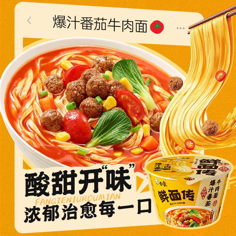 📚 白象鲜面传非油炸爆汁番茄牛肉面125g*1桶方便面泡面夜宵速食