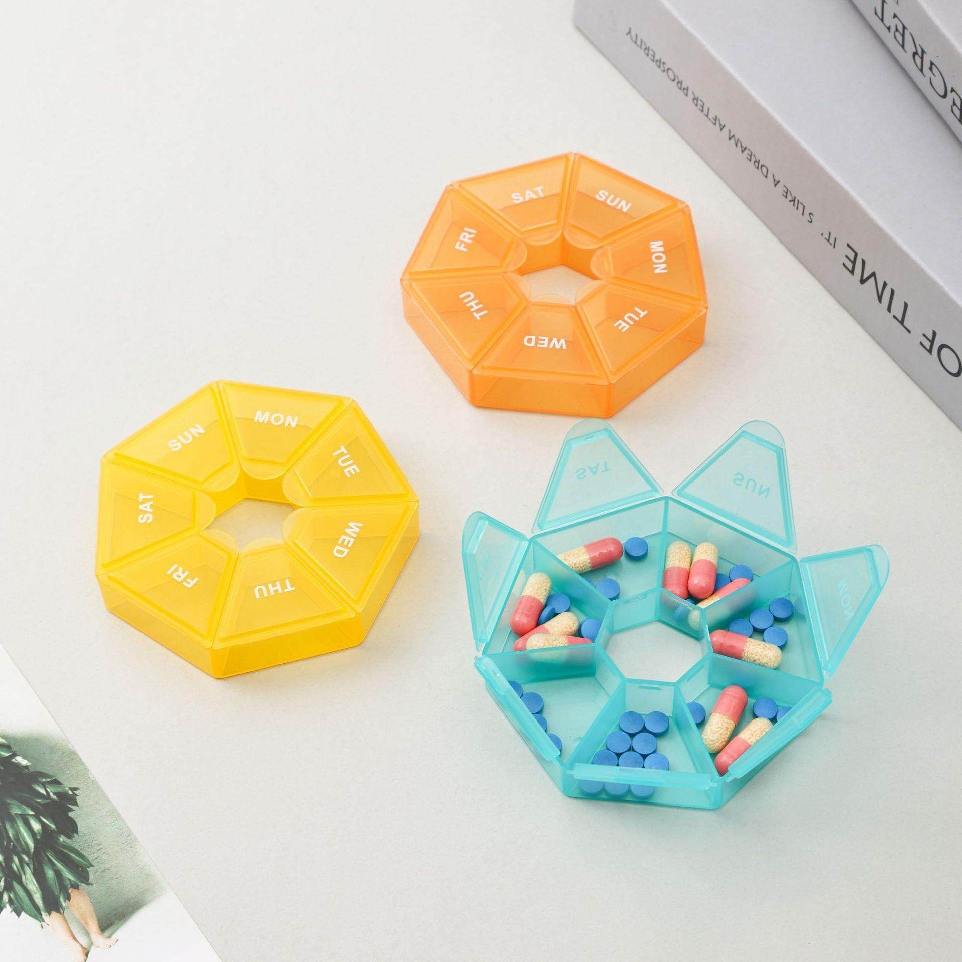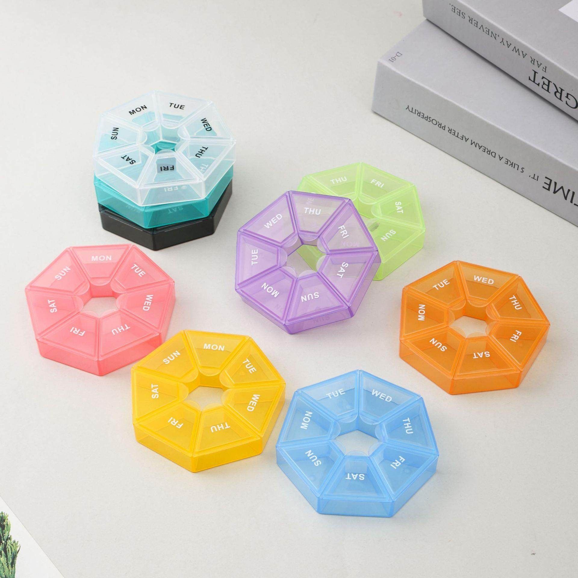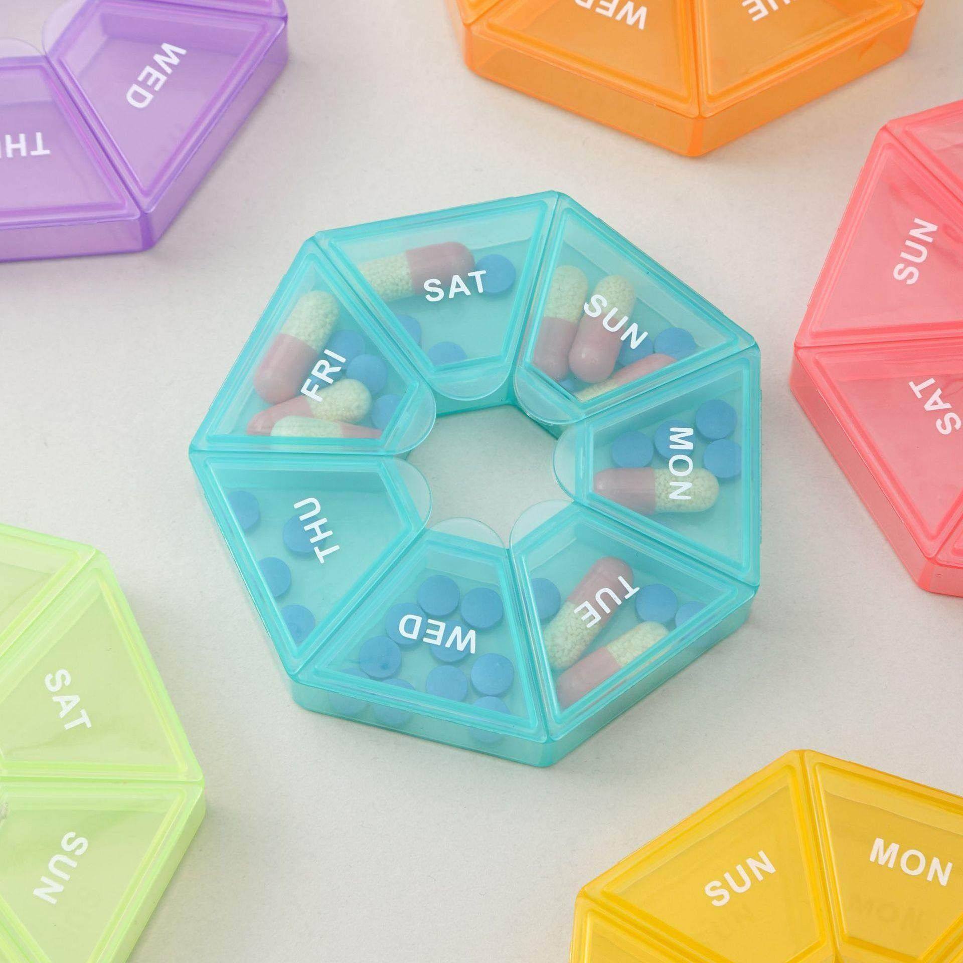 📚 一周七格药盒彩色透明塑料药丸分格盒老人七天便携收纳盒七角盒