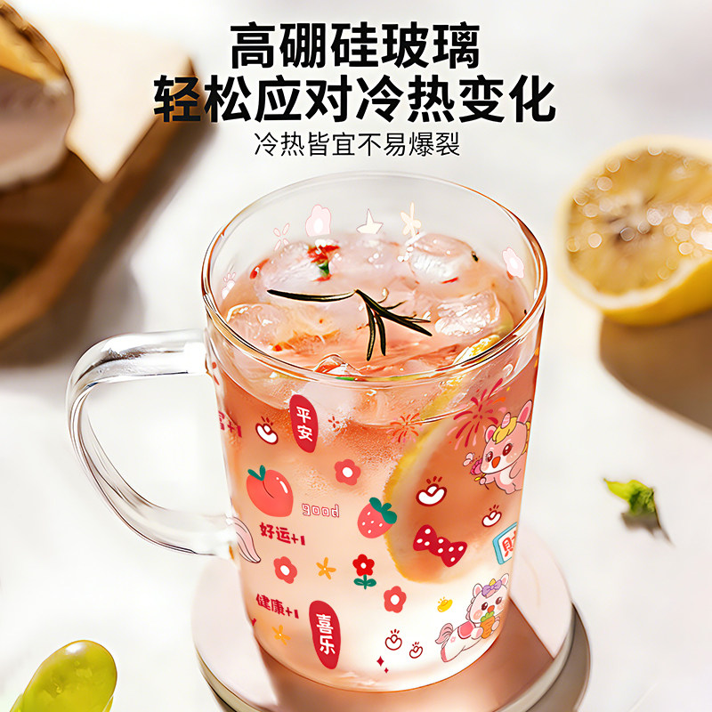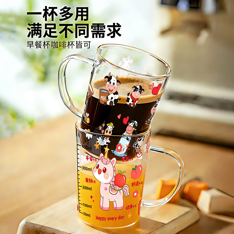 📚 卡通刻度牛奶杯高硼硅玻璃耐高温水杯家用高颜值微波炉可加热水杯