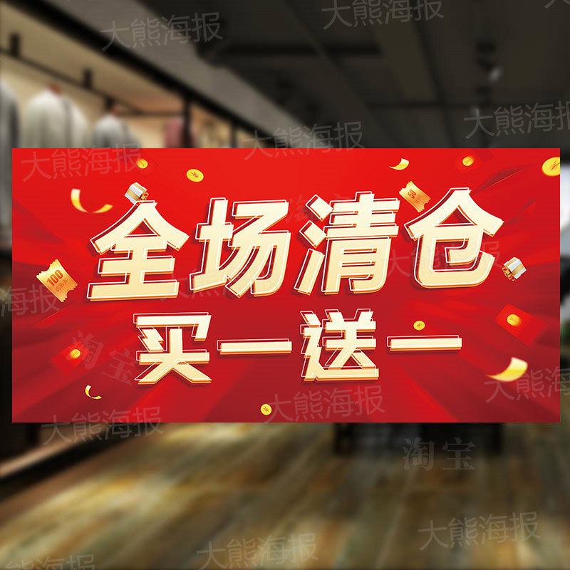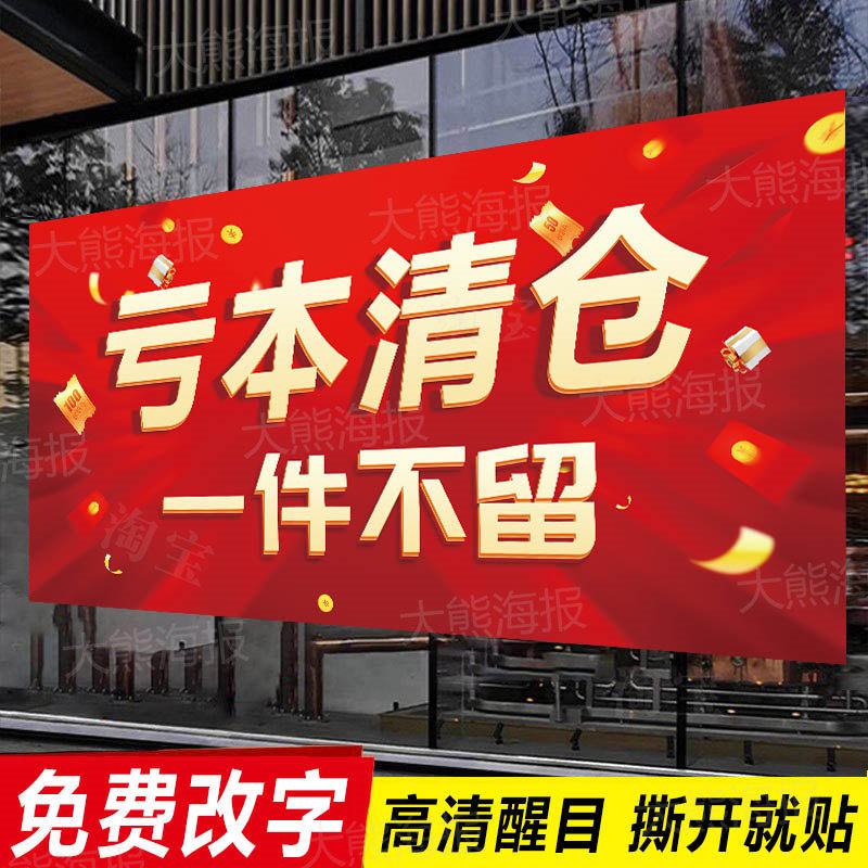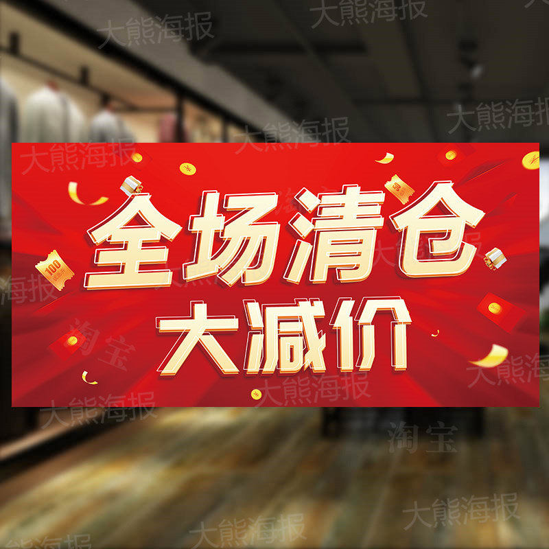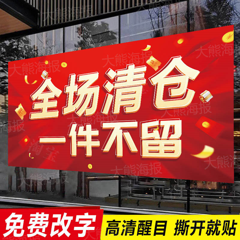 📚 全场清仓清货海报促销广告贴纸服装店特价处理一件不留大甩卖年末