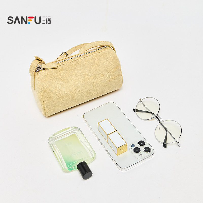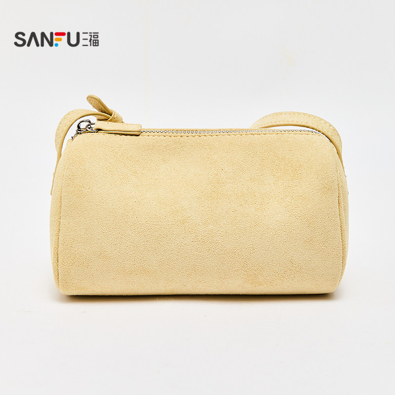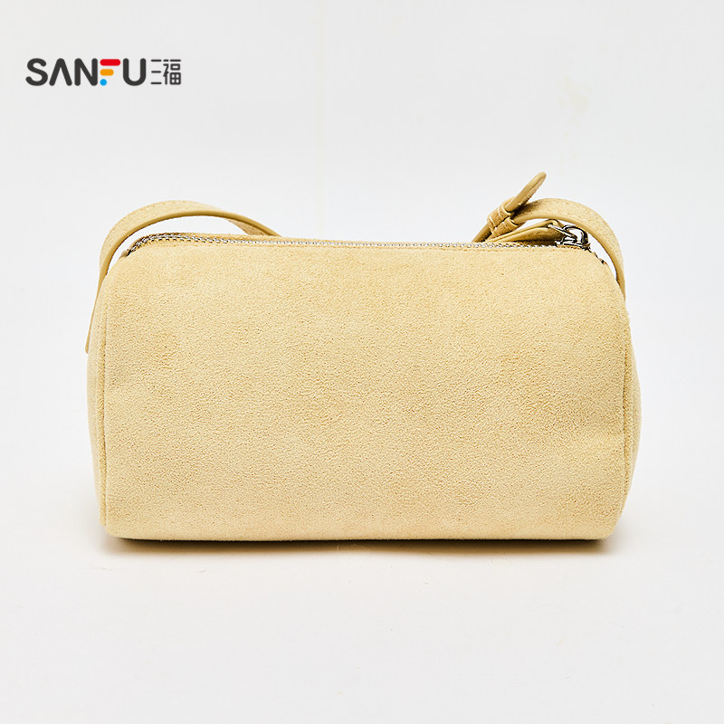 📚 三福挎包秋季复古慵懒枕头包简约纯色圆筒斜挎包女包506813