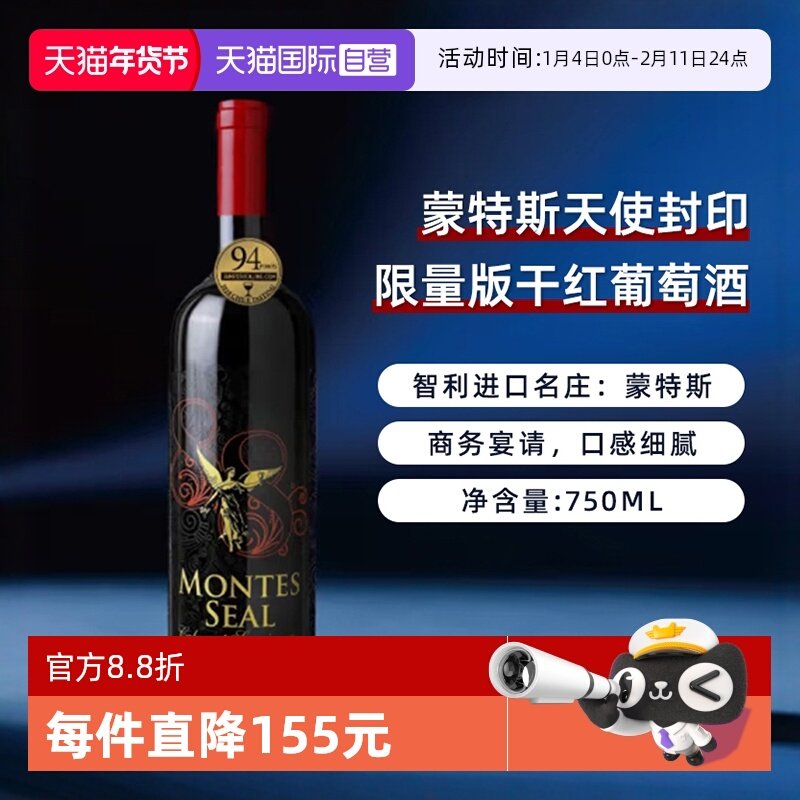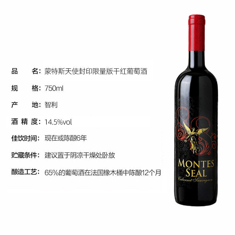 📚 【自营】智利蒙特斯天使封印限量版干红葡萄酒750ml*1进口红酒