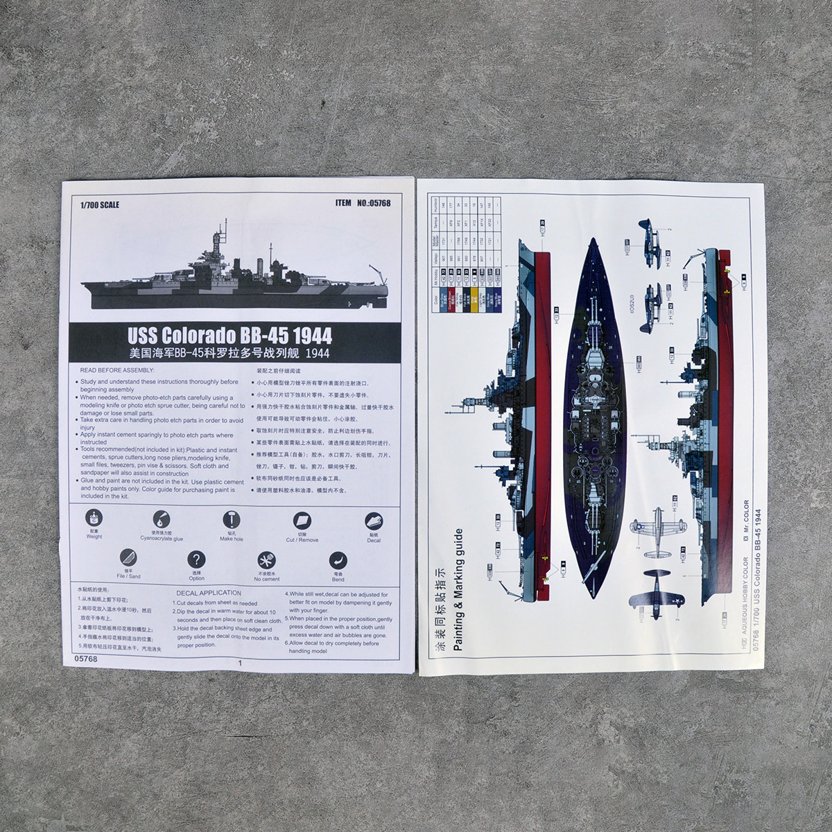 📚 小号手05768拼装模型船1/700美国海军科罗拉多号BB-45战列舰1944