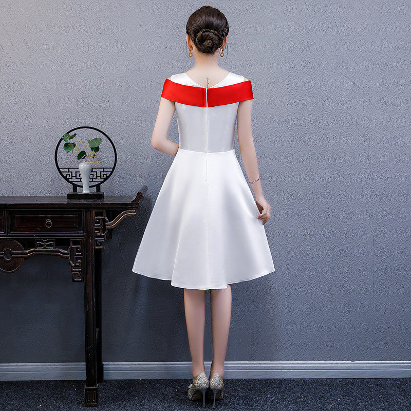 📚 小晚裙女白色礼仪服装颁奖演讲比赛朗诵唱团主持人女