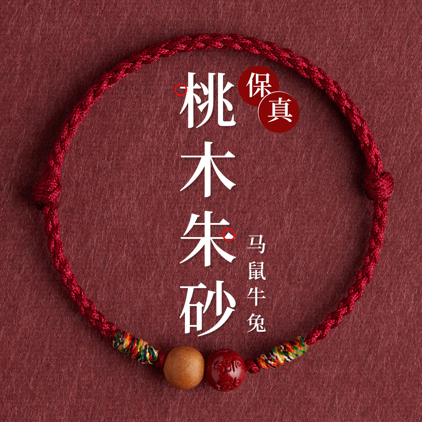 📚 普陀山朱砂桃木手串官方旗舰店马年本命年护身符红绳编织手绳礼物