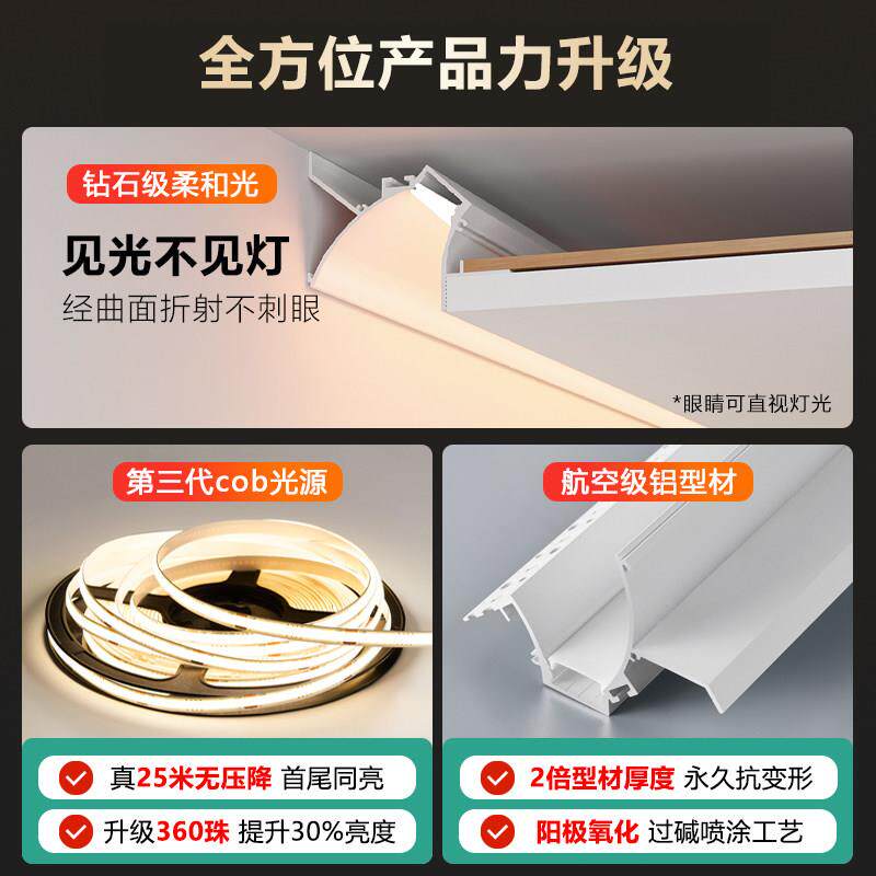 📚 悬浮吊顶反光灯槽型材线 线形灯带预埋洗墙灯槽嵌入式天花回光灯