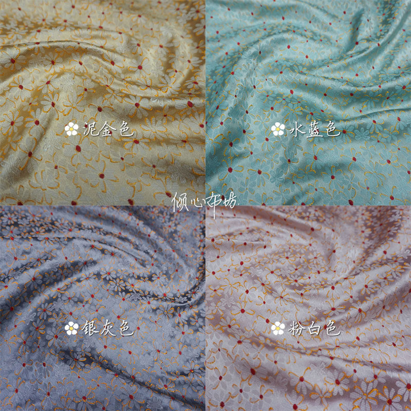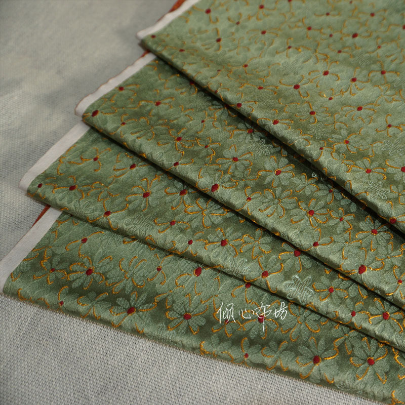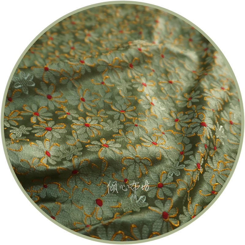 📚 独特秋香绿橄榄色可爱小花织锦缎布料丝绸缎子古香缎面料旗袍diy