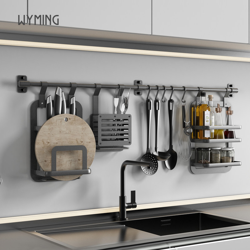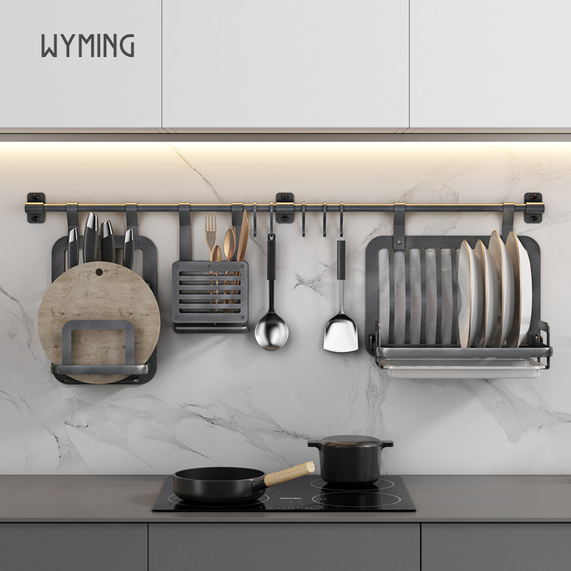 📚 厨房置物架墙面收纳架家用调料挂架锅盖架多功能免打孔壁挂式刀架
