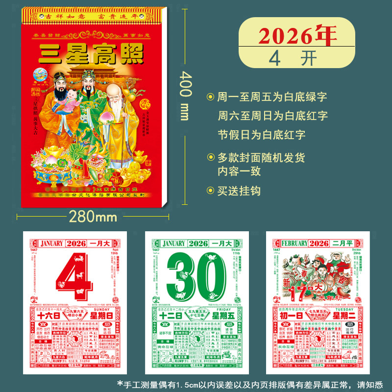 🎁首先说说外观,这款日历挂历采用了复古黄历设计,满满的都是皇室风范。大号尺寸适合家用,挂在墙上也不会显得突兀。高清印刷,每页都清晰可见,给人一种高品质的感觉。而且,它还采用了手撕式设计,每天一撕,方便实用。