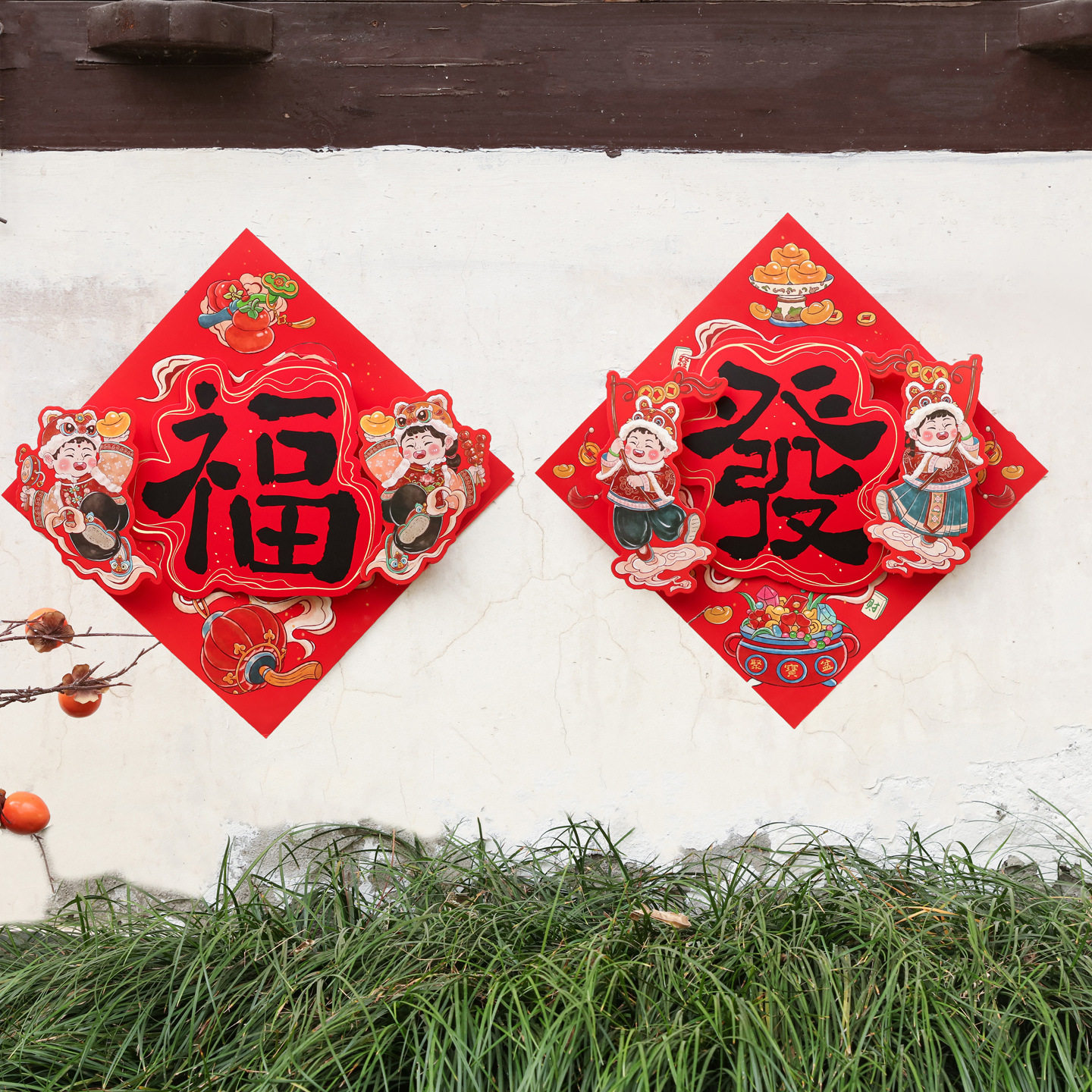 📚 新年可爱立体福字装饰门幅马年创意发字门贴2026年春节氛围感年画
