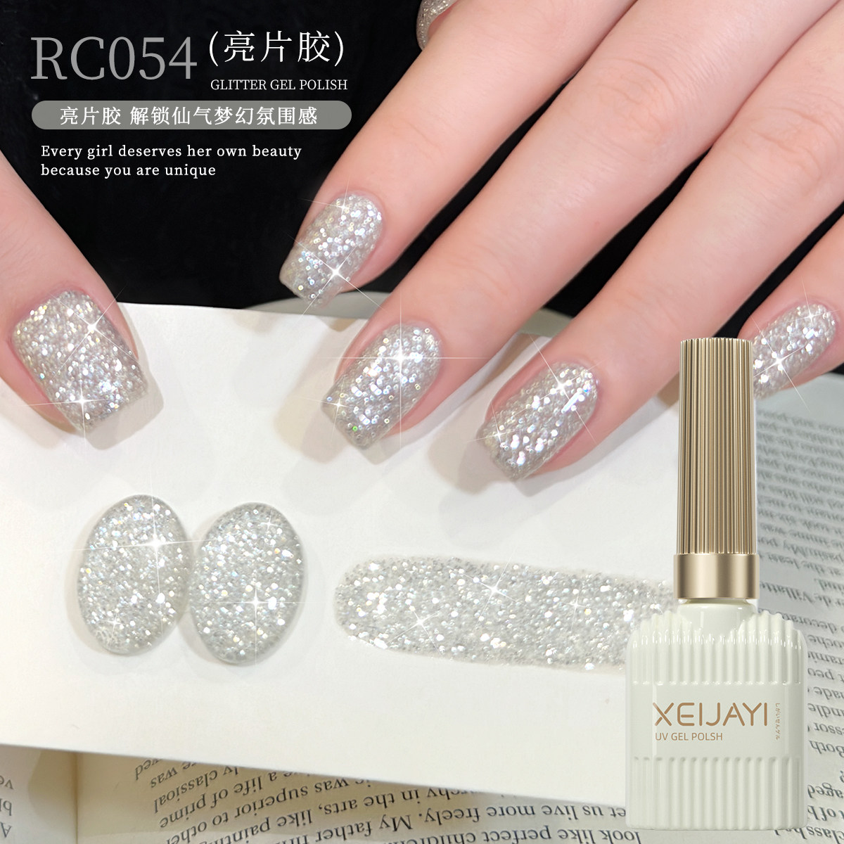 📚 XEIJAYI/仙甲依2026年新款摧残闪耀亮片胶RC系列美甲店专用甲油胶