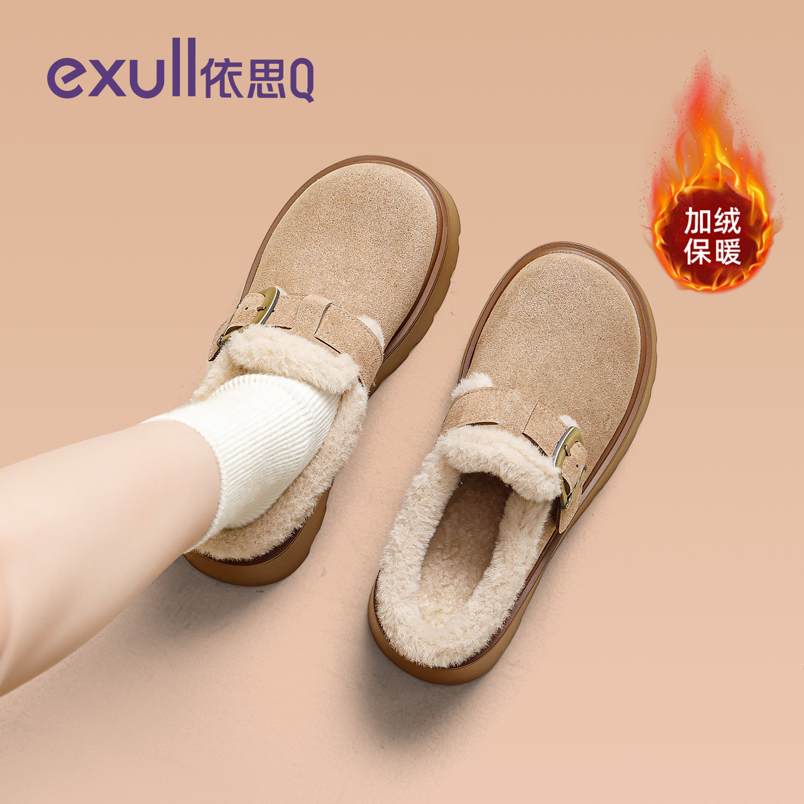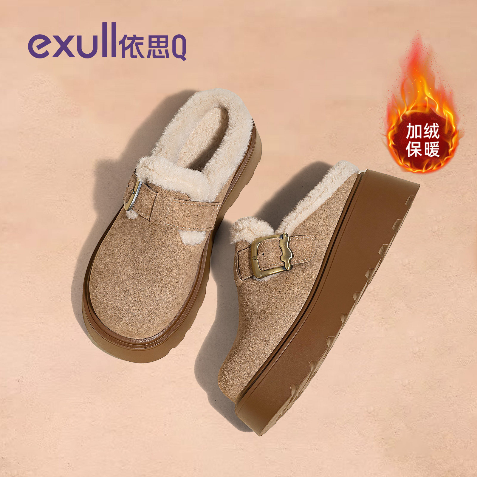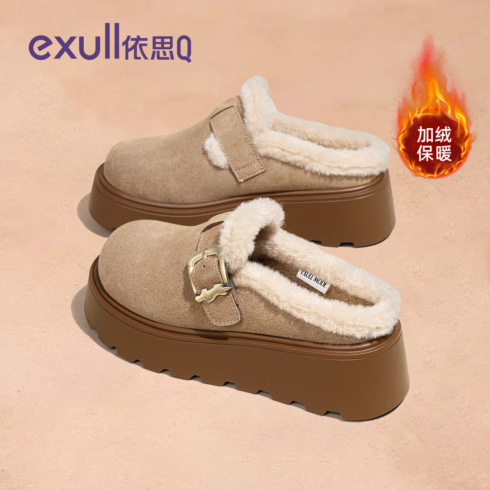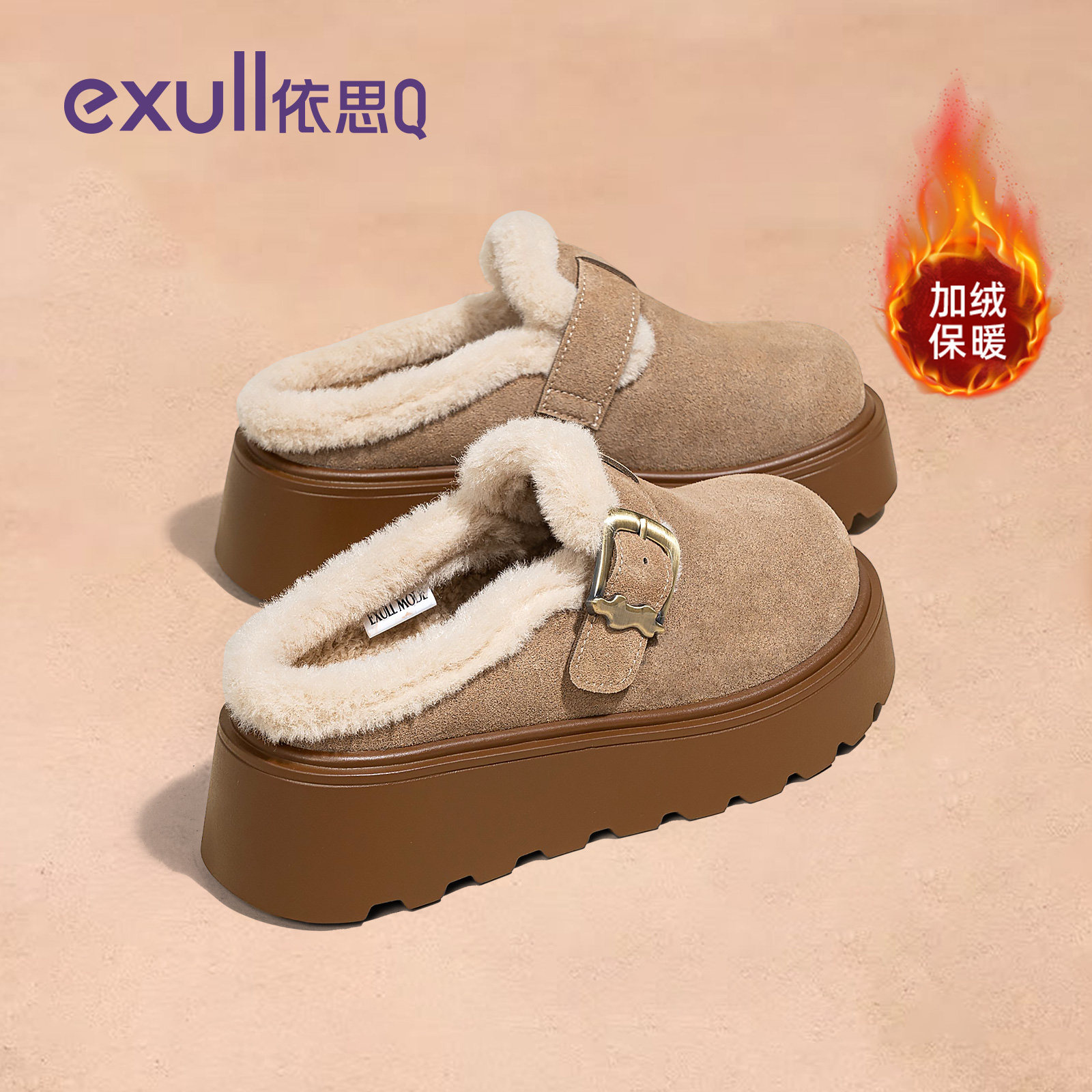 📚 依思q厚底勃肯鞋女2025冬季新款加绒加厚雪地靴毛毛半拖棉鞋外穿