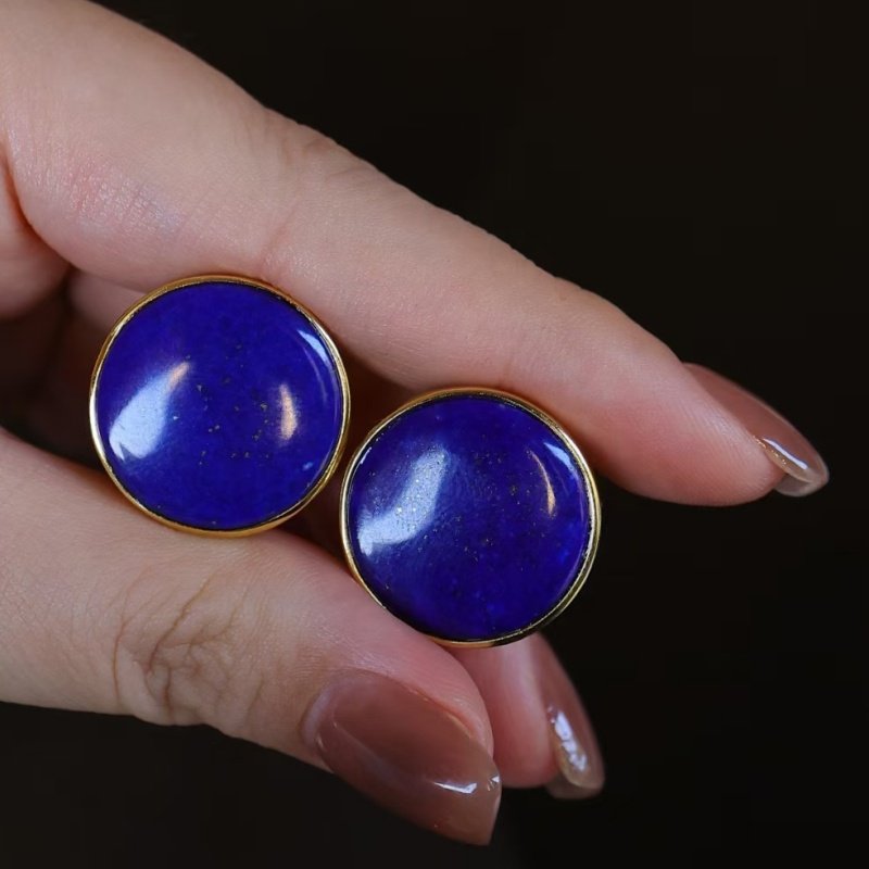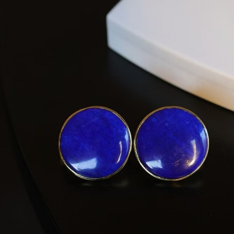 📚 克莱因蓝天然青金石耳钉女925纯银镀金圆形轻奢高级感耳饰耳夹