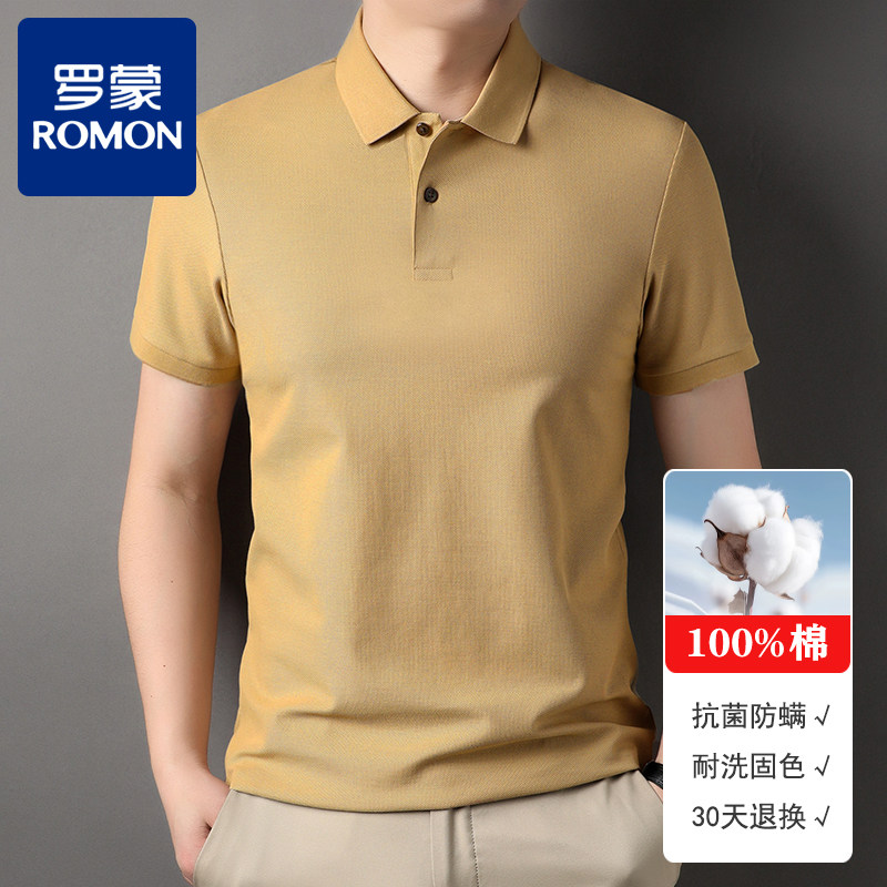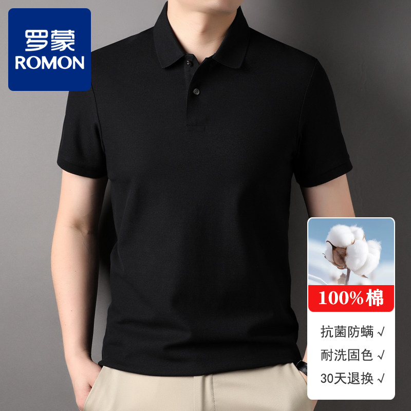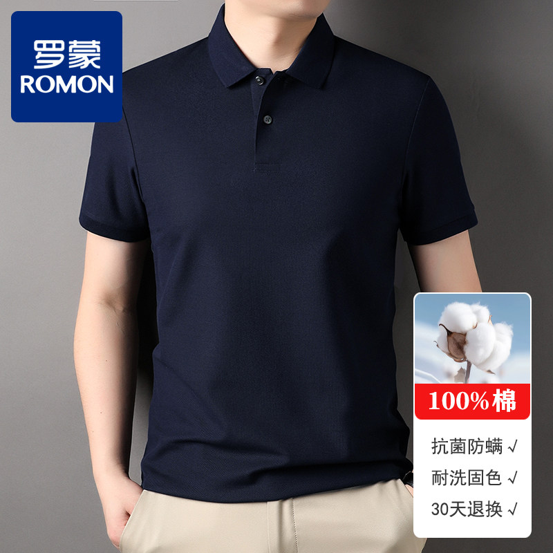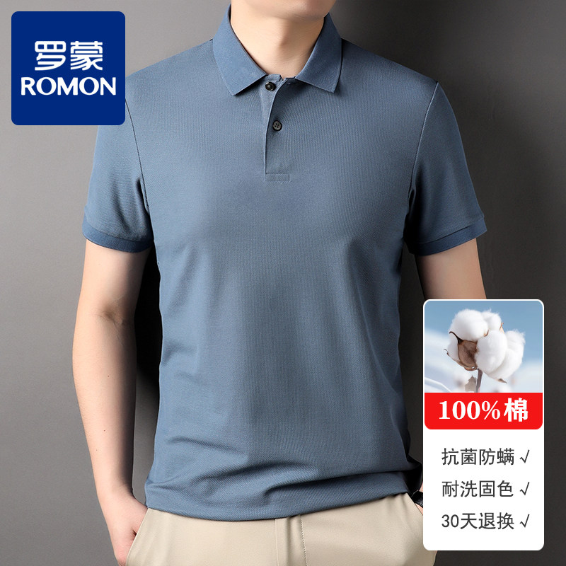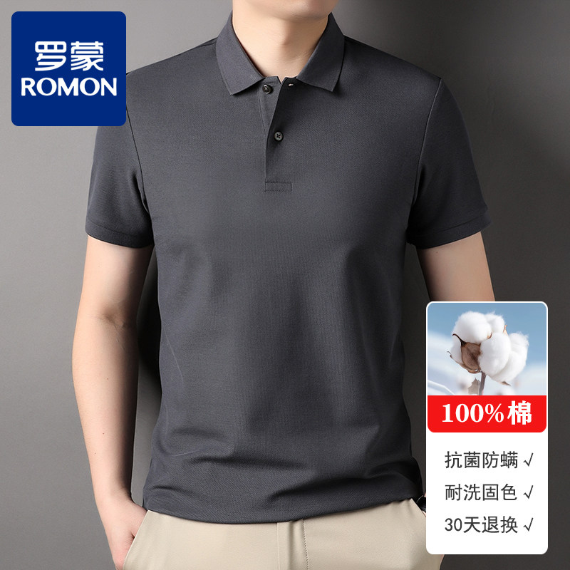 📚 【凉感抑菌】罗蒙100%纯棉短袖t恤男翻领夏季POLO衫大码透气网眼T