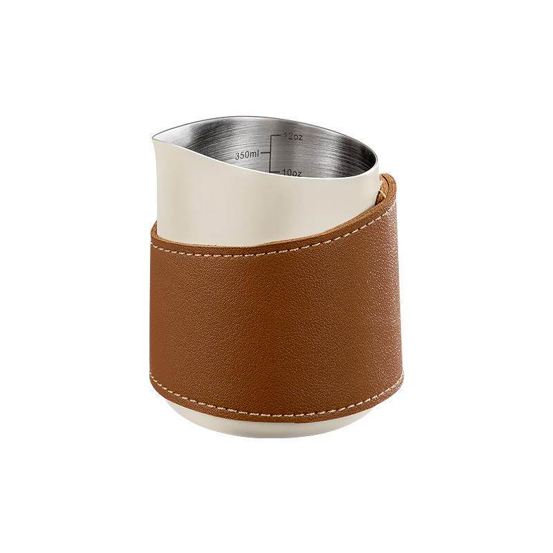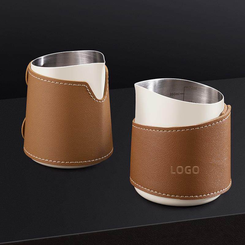 📚 SUS316不锈钢拉花杯 轰炸机器拉花缸 无手柄皮套拉花杯 意式咖啡