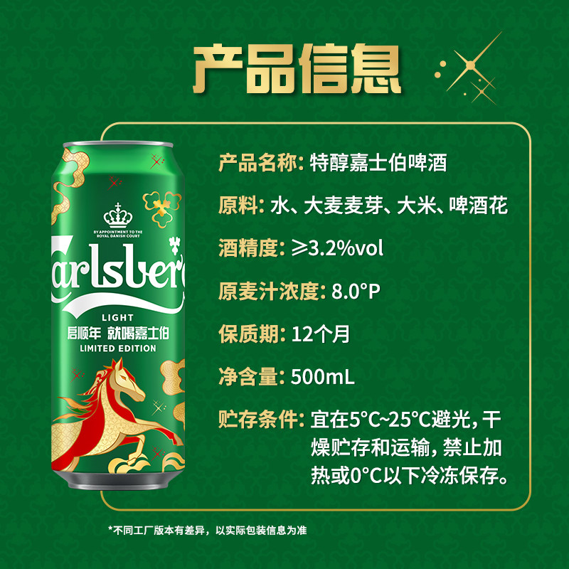 📚 嘉士伯啤酒特醇啤酒500ml*12罐丹麦清爽拉格小麦啤酒整箱