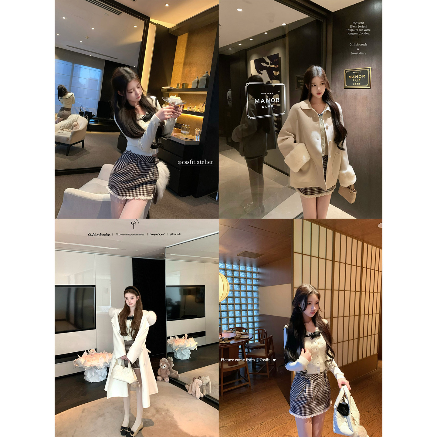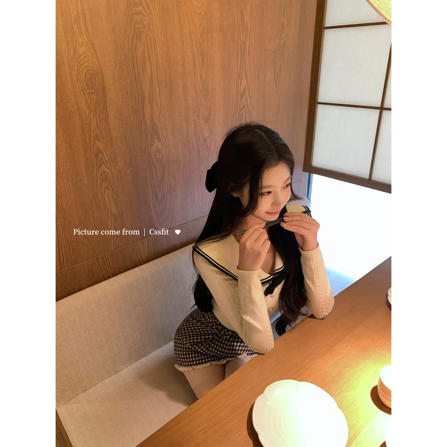 📚 迟伞伞26/ss 海港初雪 海军风大翻领修身针织衫上衣千鸟格纹短裙