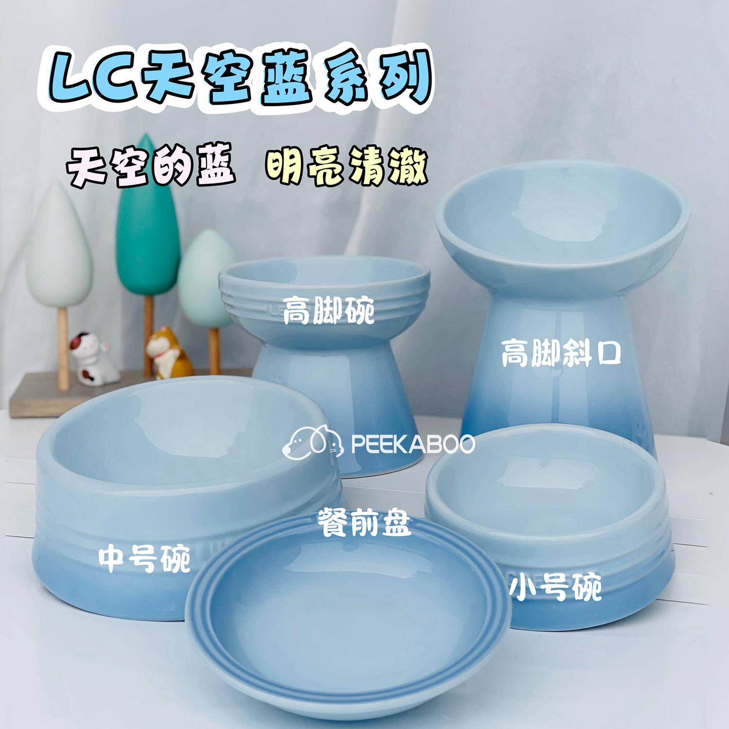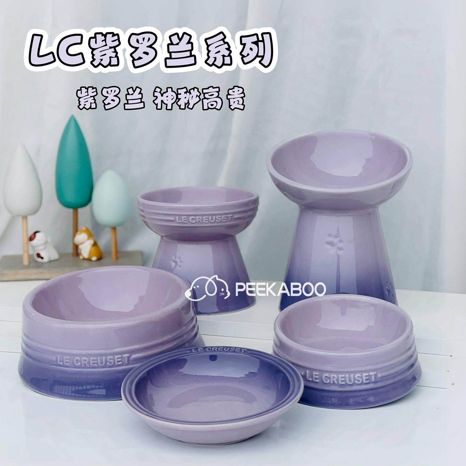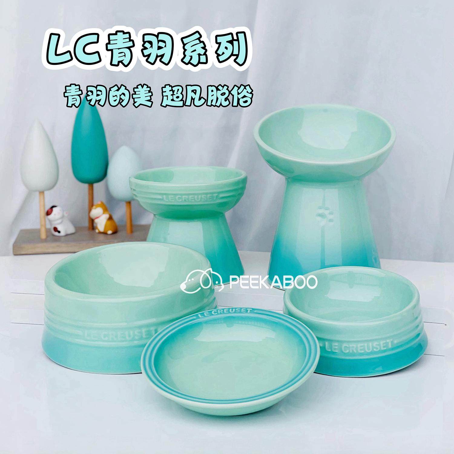 📚 出口法国多彩釉下彩宠物陶瓷护颈高脚碗猫狗中小犬防打翻饭盆水碗
