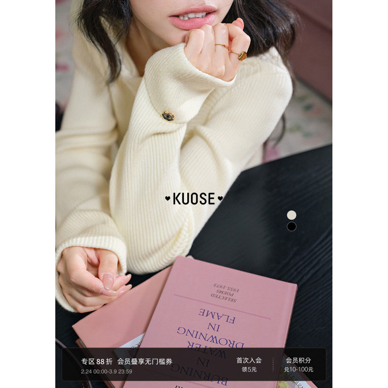 📚 阔色白色法式气质扭结针织衫新26春季女毛衣杏色内搭长袖上衣秋冬