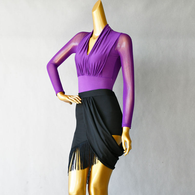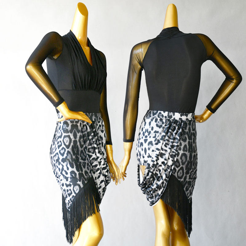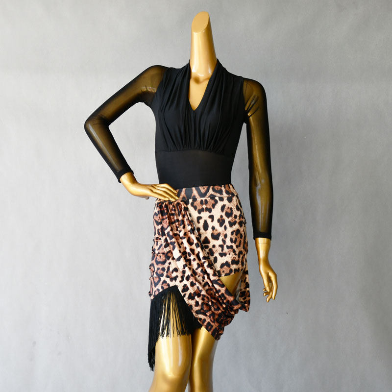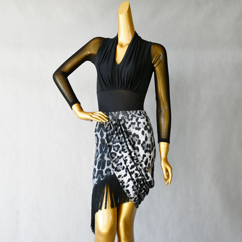 📚 拉丁舞服豹纹包裙成年人女黑色上衣练功服伦巴桑巴下裙流苏摩登舞