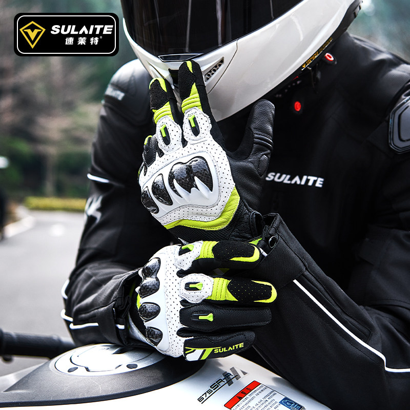 📚 速莱特摩托车骑行手套全指触屏男女越野四季防摔碳纤维全指手套