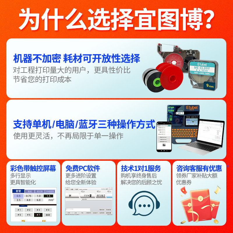📚 Etubel宜图博线号机ME-1s ME-1便携式号码管电脑标签蓝牙打码机