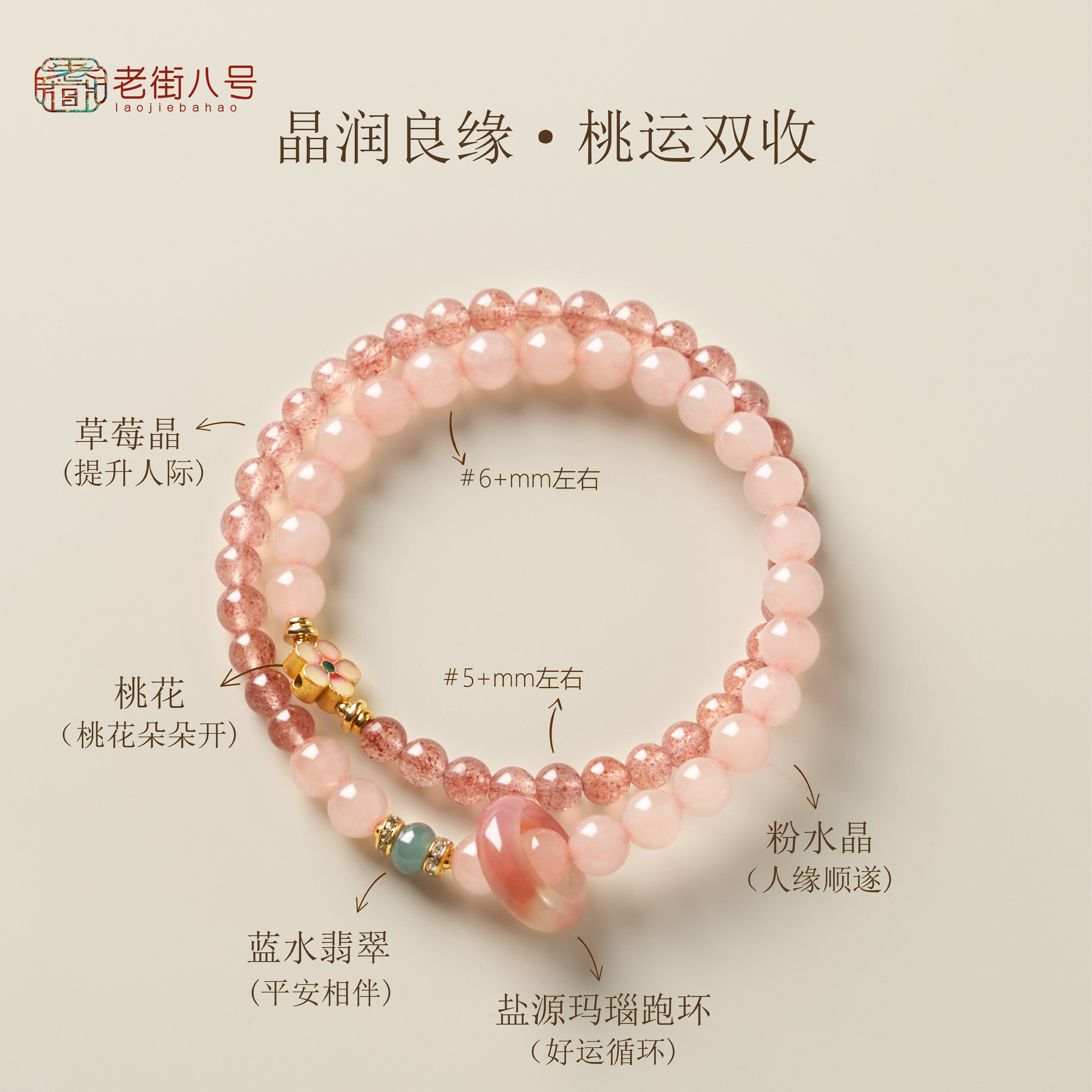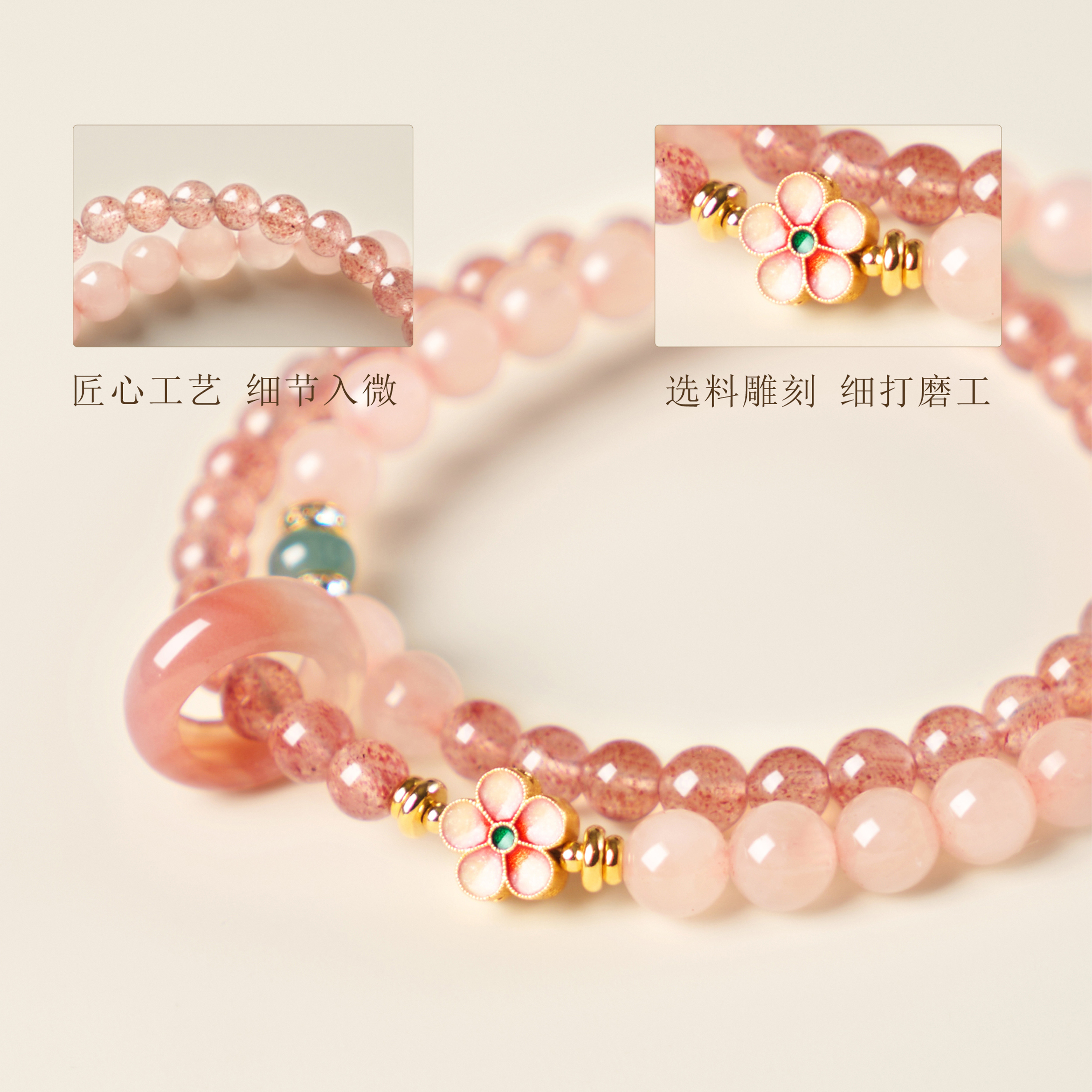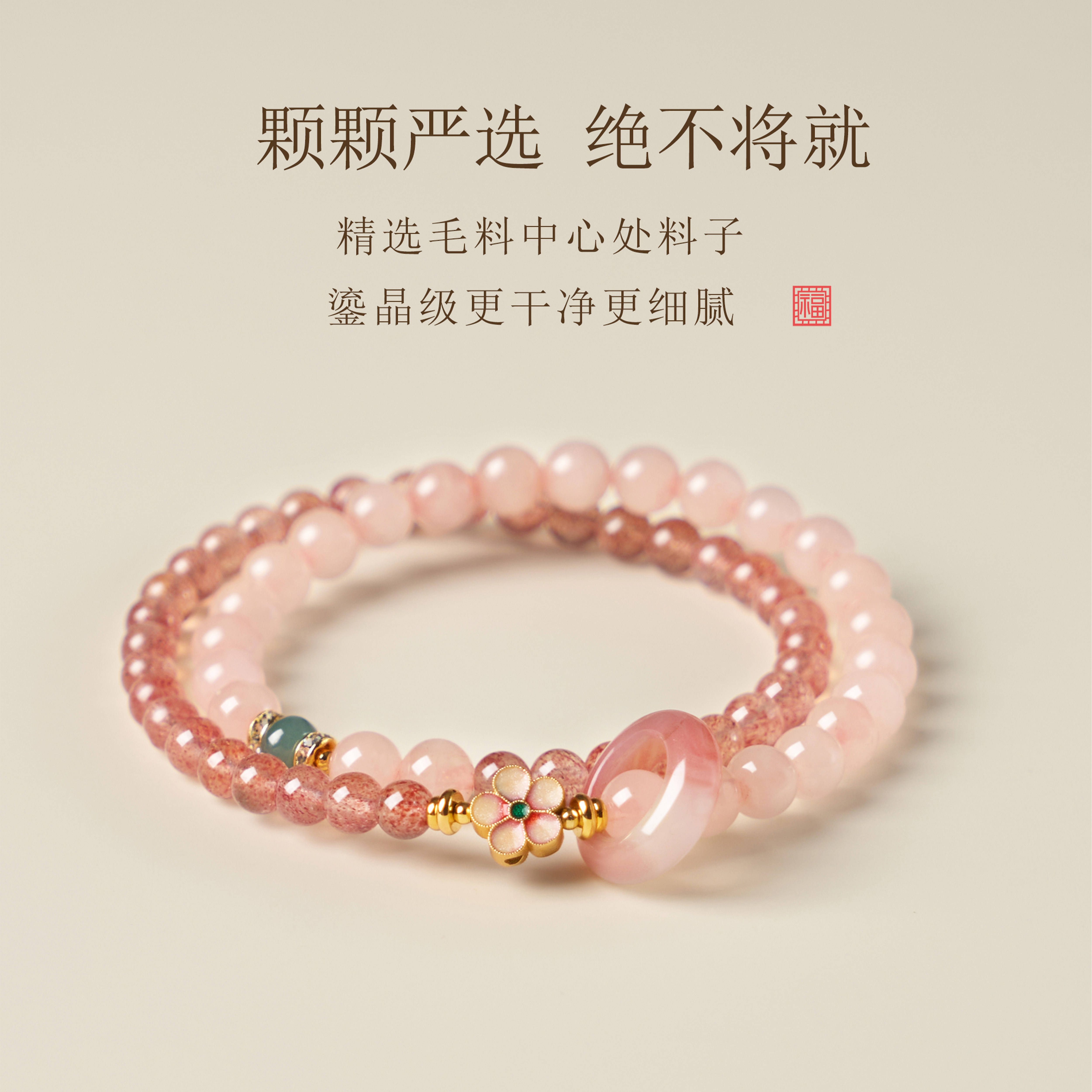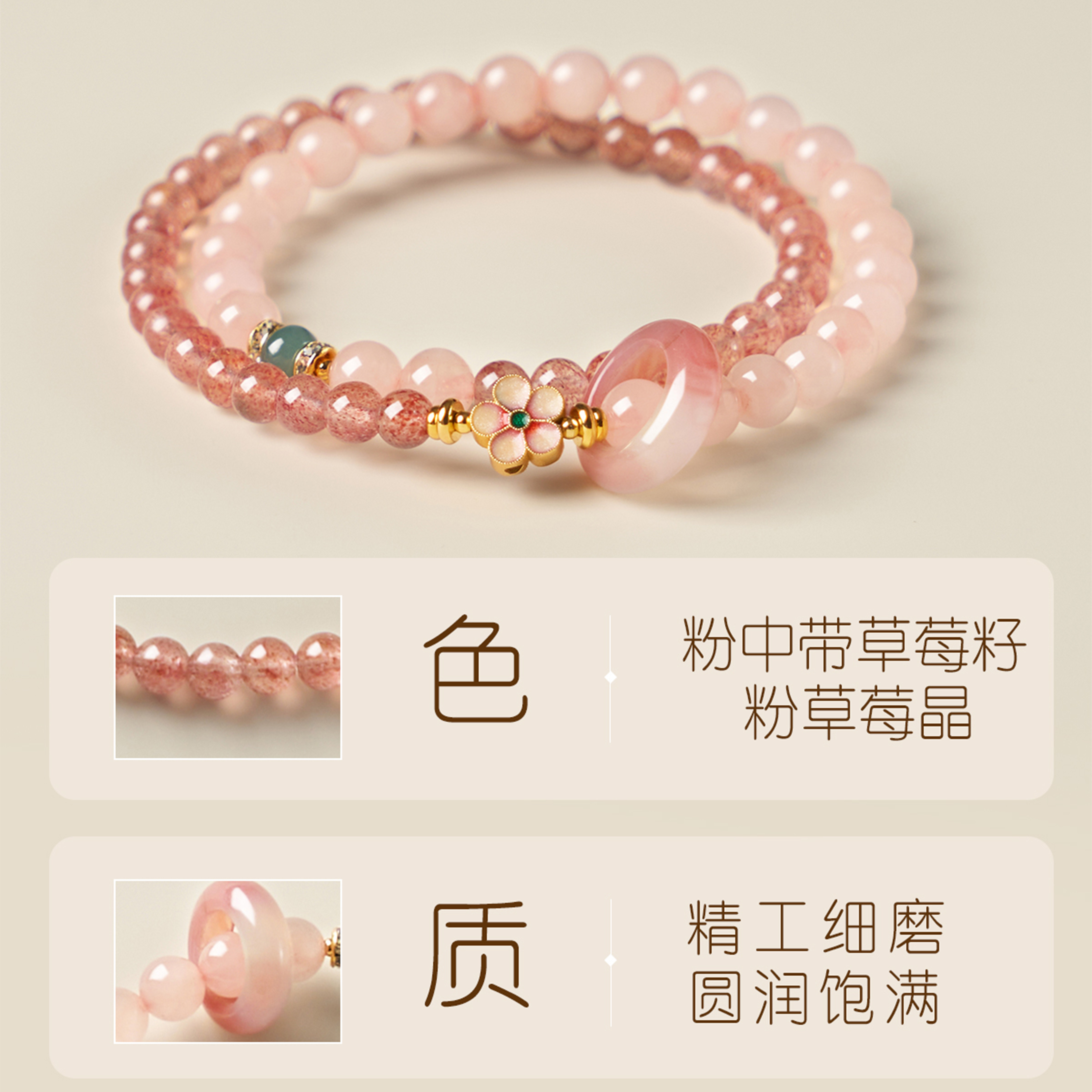 📚 草莓晶转运手链招正缘桃花四叶呈祥日常手链纳福粉色高质量