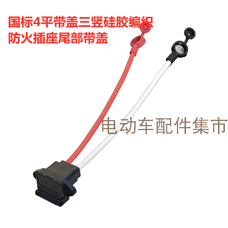 📚 电动车电瓶插头插座防尘三孔充电孔口充电器输出入线三竖一横两竖