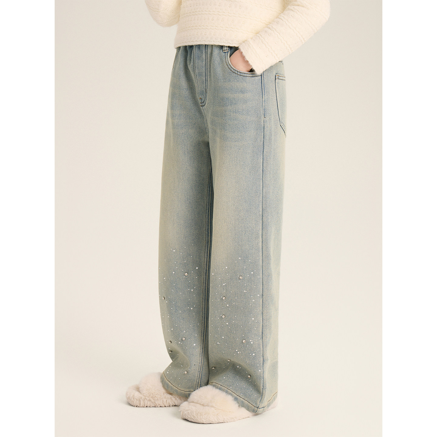 📚 Amybaby女童裤子冬季2025新款韩版气质烫钻复古百搭加厚牛仔裤