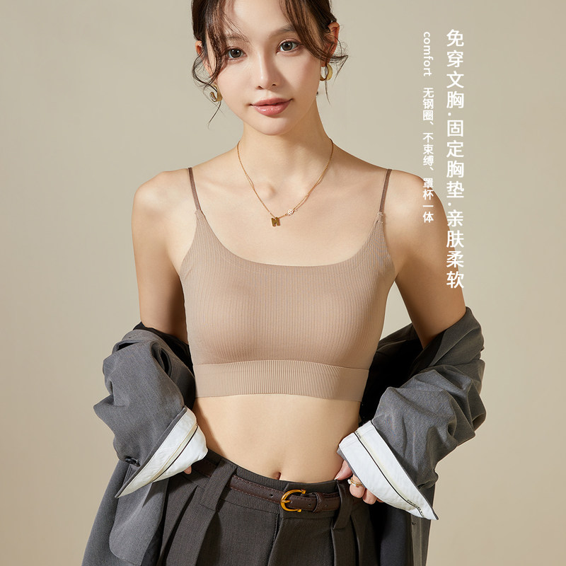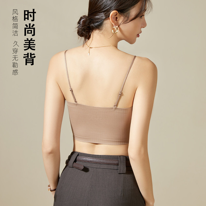 📚 带胸垫文胸一体式女无痕抹胸裹胸防走光衬衫内搭防透美背吊带背心