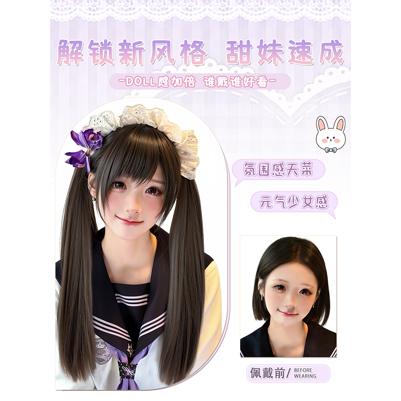 📚 【扎好发出】假发全头套女甜系双马尾假发lolita日常可戴仿真假发