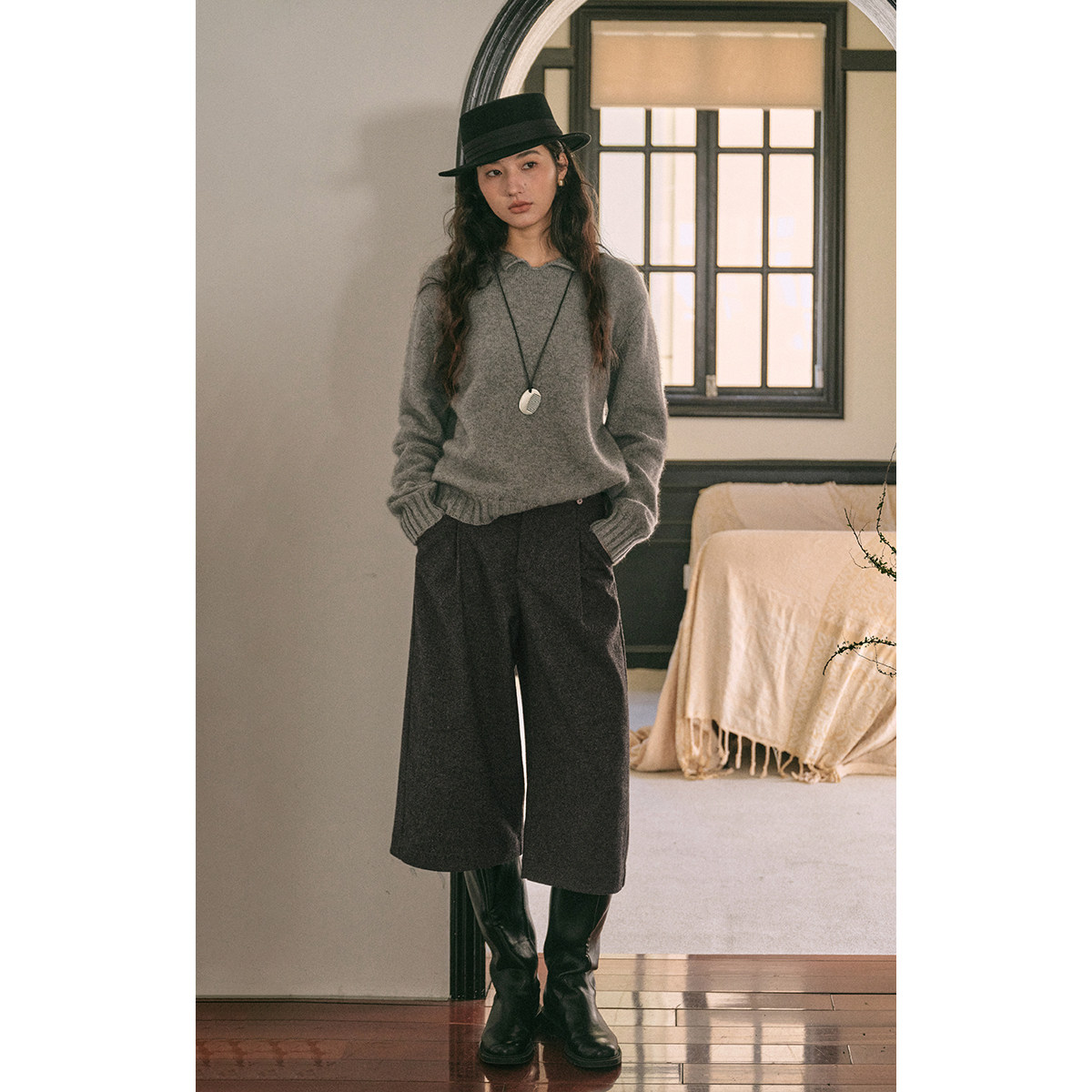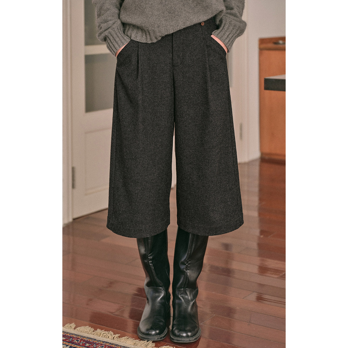 📚 solighter法式复古羊毛混纺阔腿七分裤女冬季2025新款直筒a字中裤