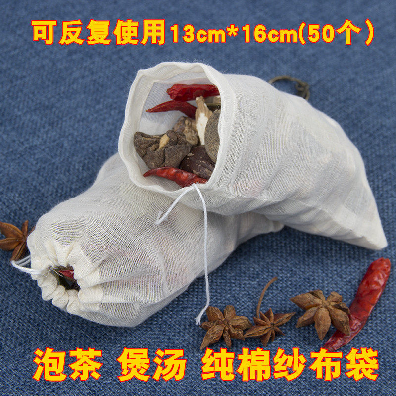📚 中号50个棉纱布13*16抽线煲汤袋过滤袋煎药袋纱布袋隔渣中药布袋