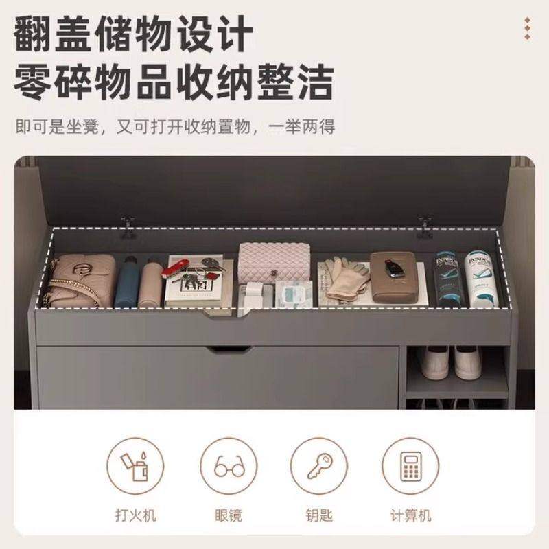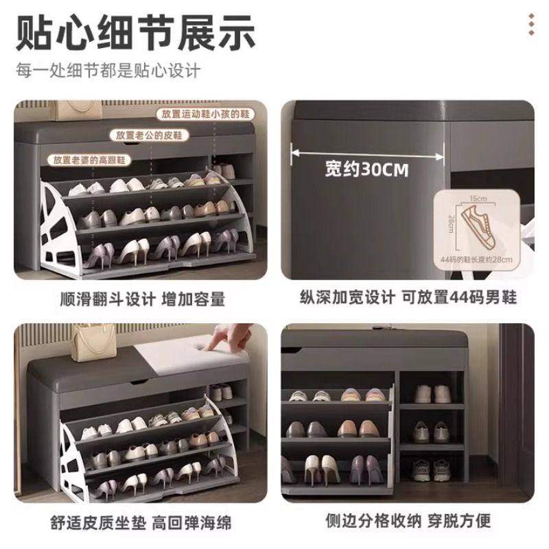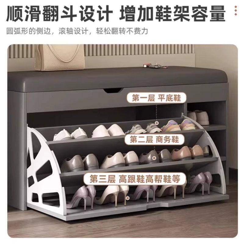 📚 实木换鞋凳现代翻斗收纳凳软包坐垫入户鞋架家用长条凳储物简易