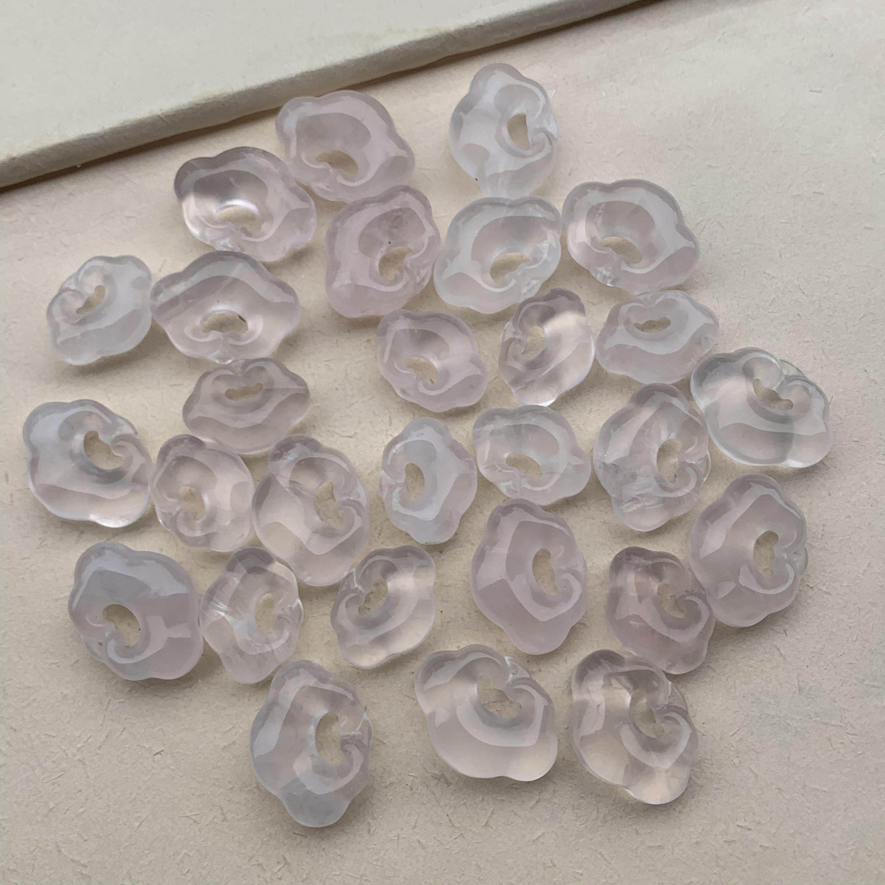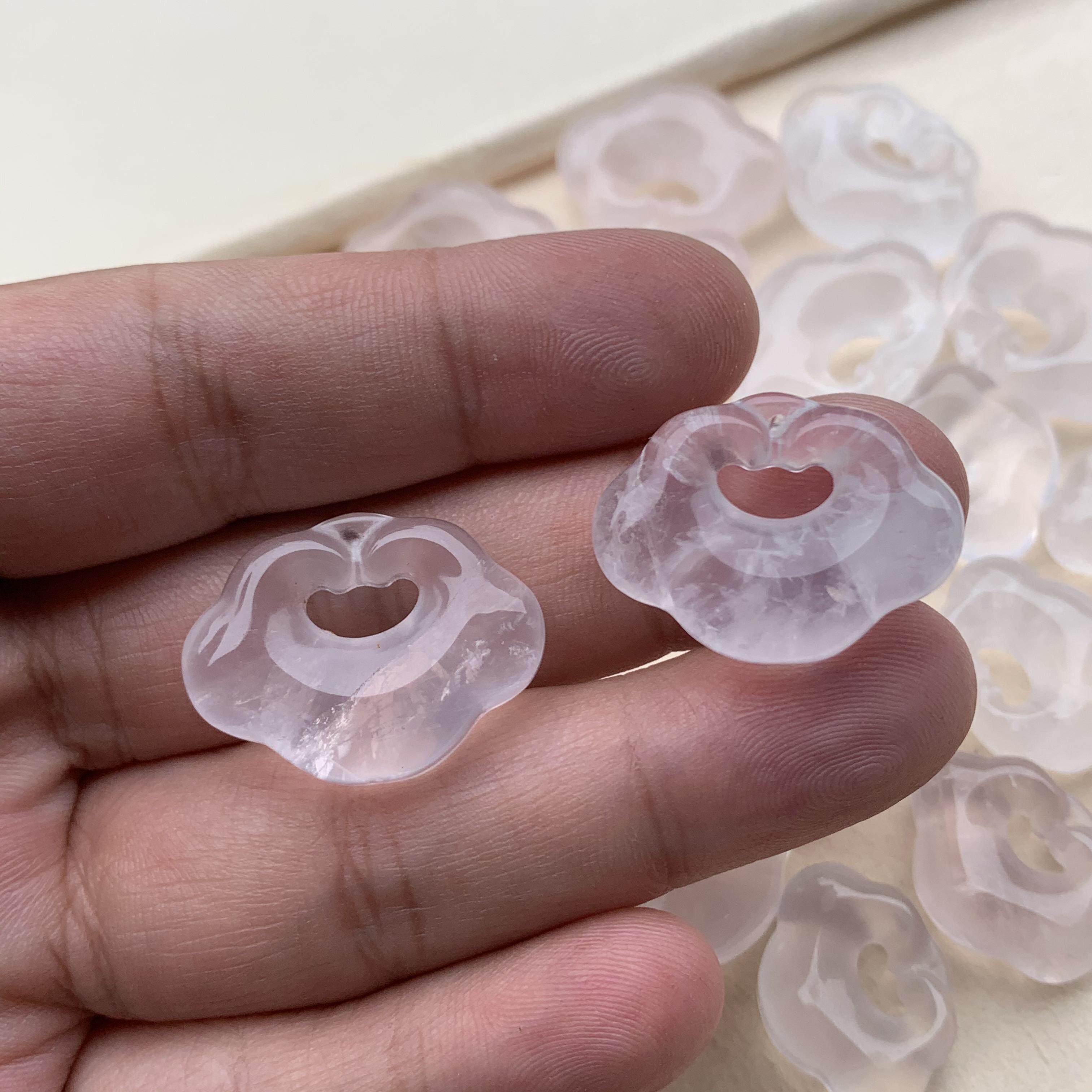 📚 天然莫桑比克粉水晶透体如意平安祥云锁吊坠项链半成品饰品配件