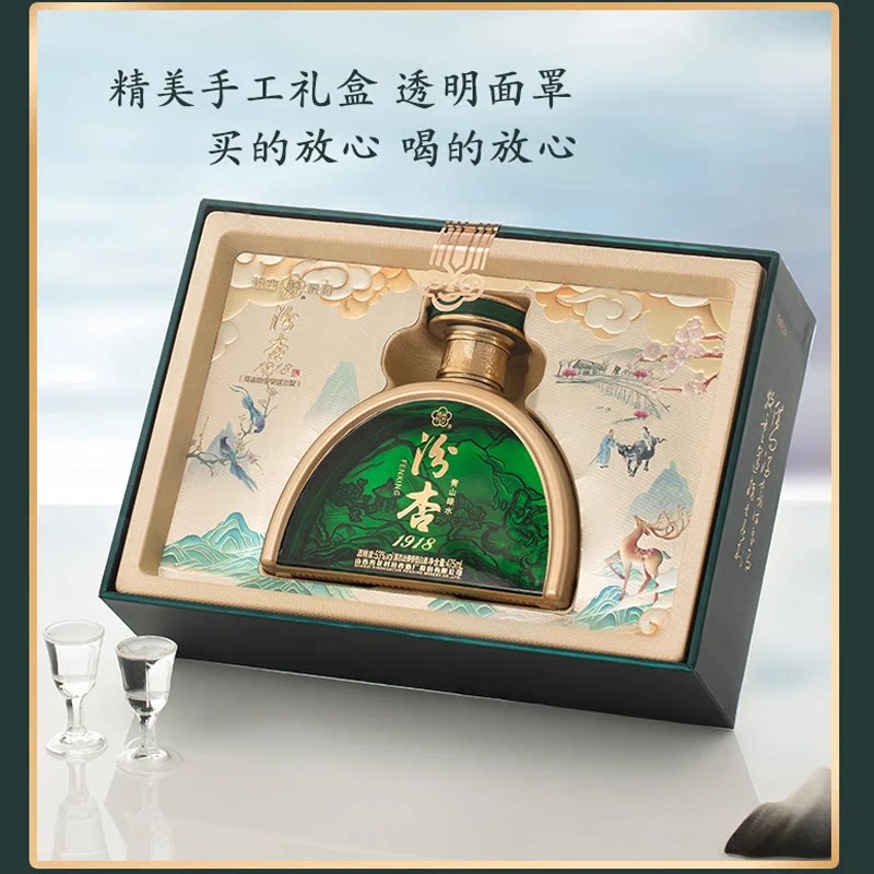 📚 汾杏1918清香型白酒 固态法 送礼自饮 高端礼盒 53度 475mL 2盒
