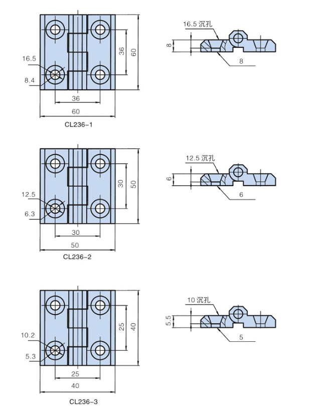 📚 黑色加厚锌合金合页236白色镀铬铰链长40宽506065铝合金型材电箱