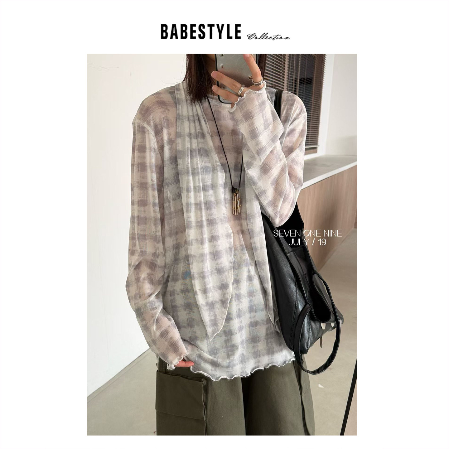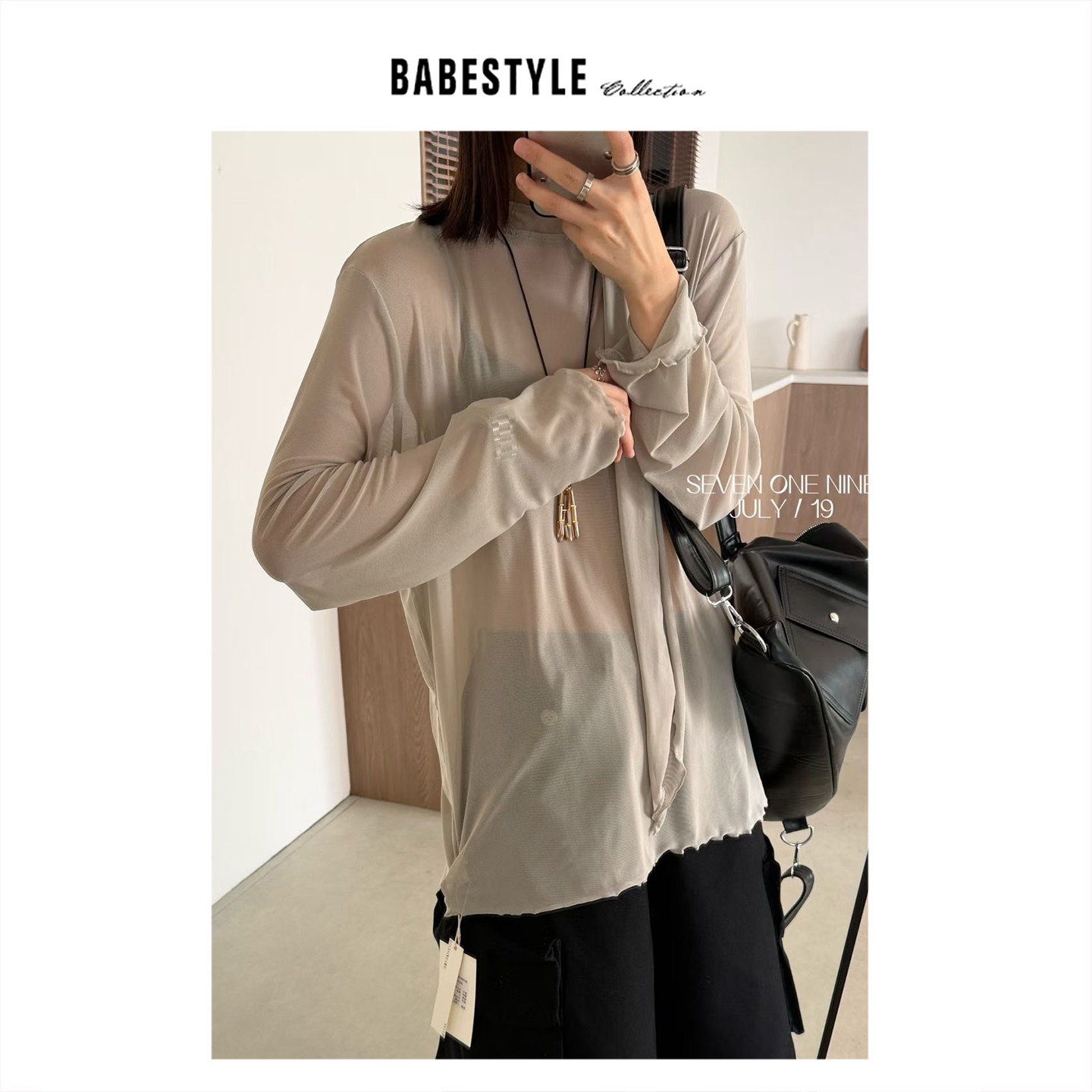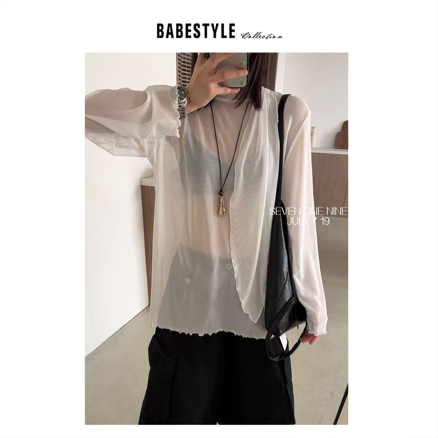 📚 BABESTYLE |“后背飘带”首尔简约百搭波浪木耳边叠穿网纱宽松T