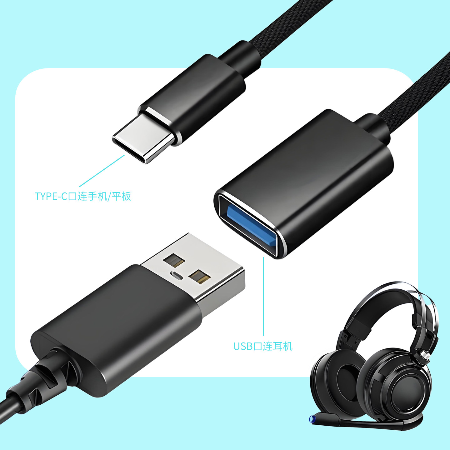 📚 井拓 USB转接头Typec转换器电脑头戴式耳机耳麦游戏麦克风连接手机OTG数据线适用荣耀OPPO华为小米VIVO红米