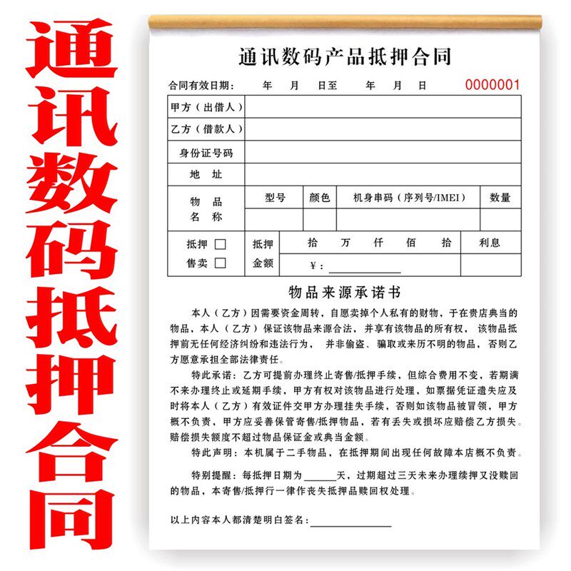 📚 极速现货手机数码物品抵押v售卖寄售典当合同凭证协议手机质押借