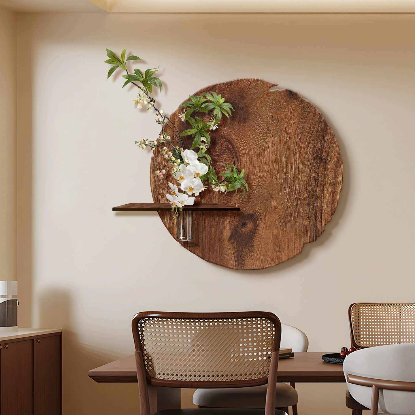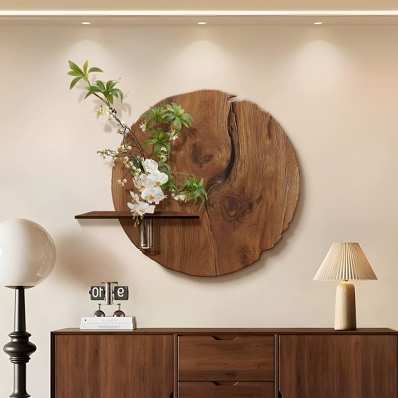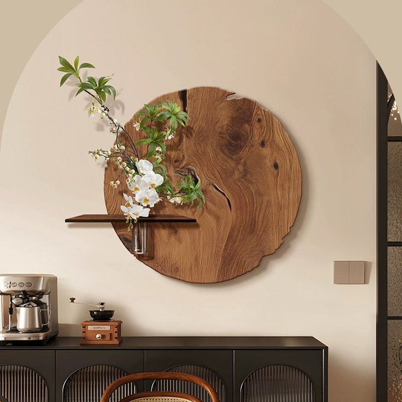 📚 中古风木纹餐厅装饰画水培绿植客厅电视背景墙挂画入户门玄关壁画