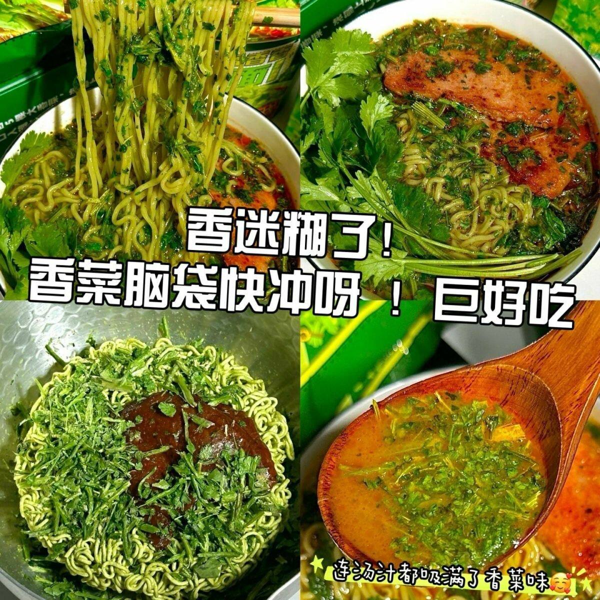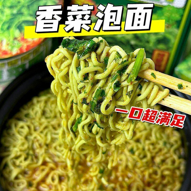 📚 香菜泡面方便油炸方便面懒人速食夜宵绿色蔬菜零食面饼冲泡整箱