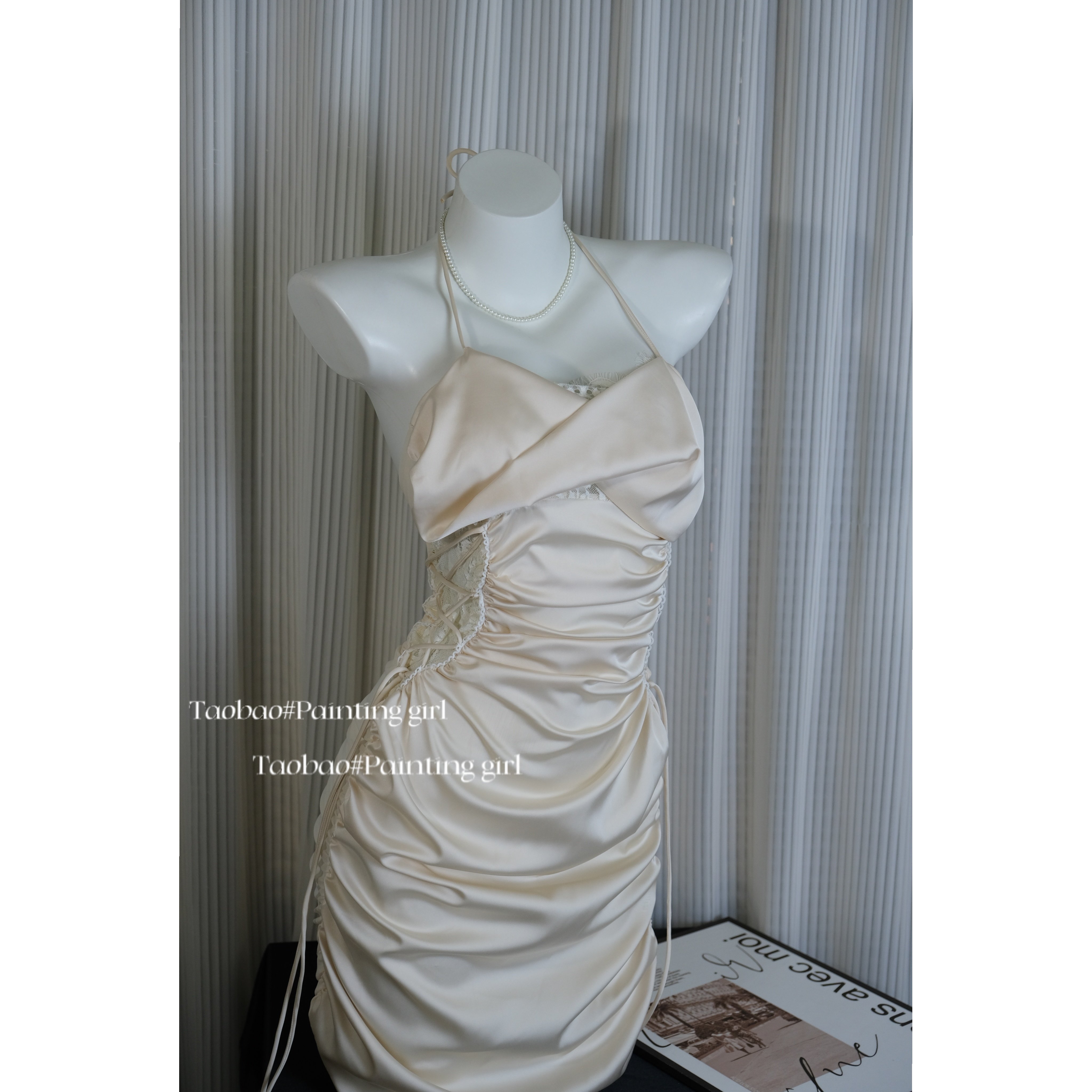 📚 郑大嘻~夏日邂逅·大码性感女睡衣可掀褶皱纯欲风吊带冰丝睡裙