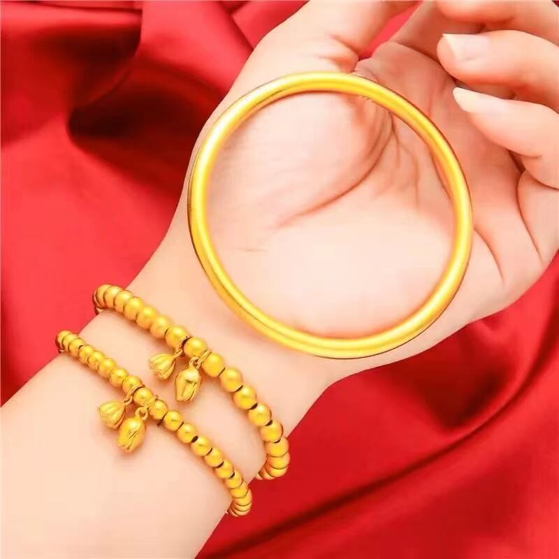 📚 越南适用手链越南沙金手鐲女传承法铜镯子久不掉色仿真黄金色戒指