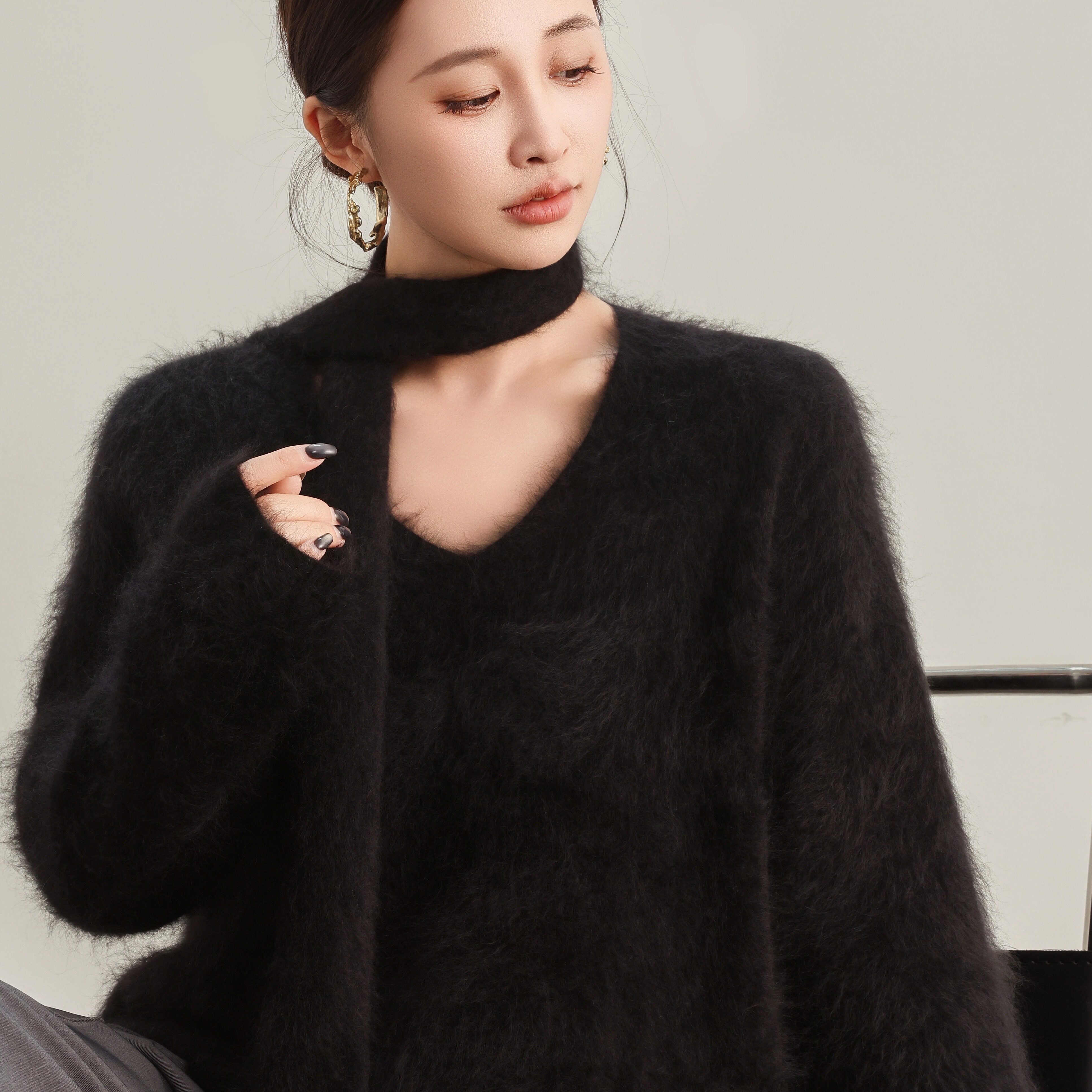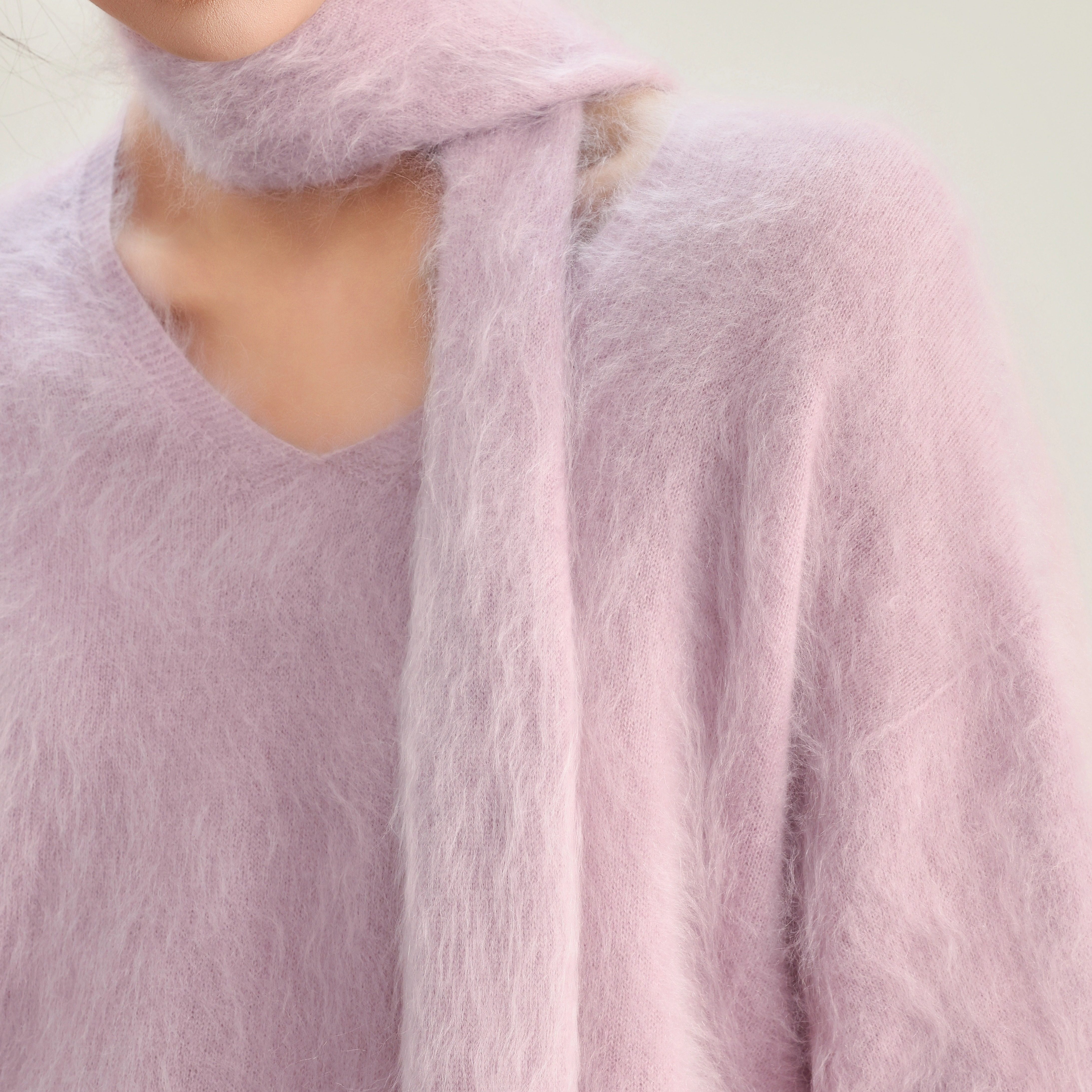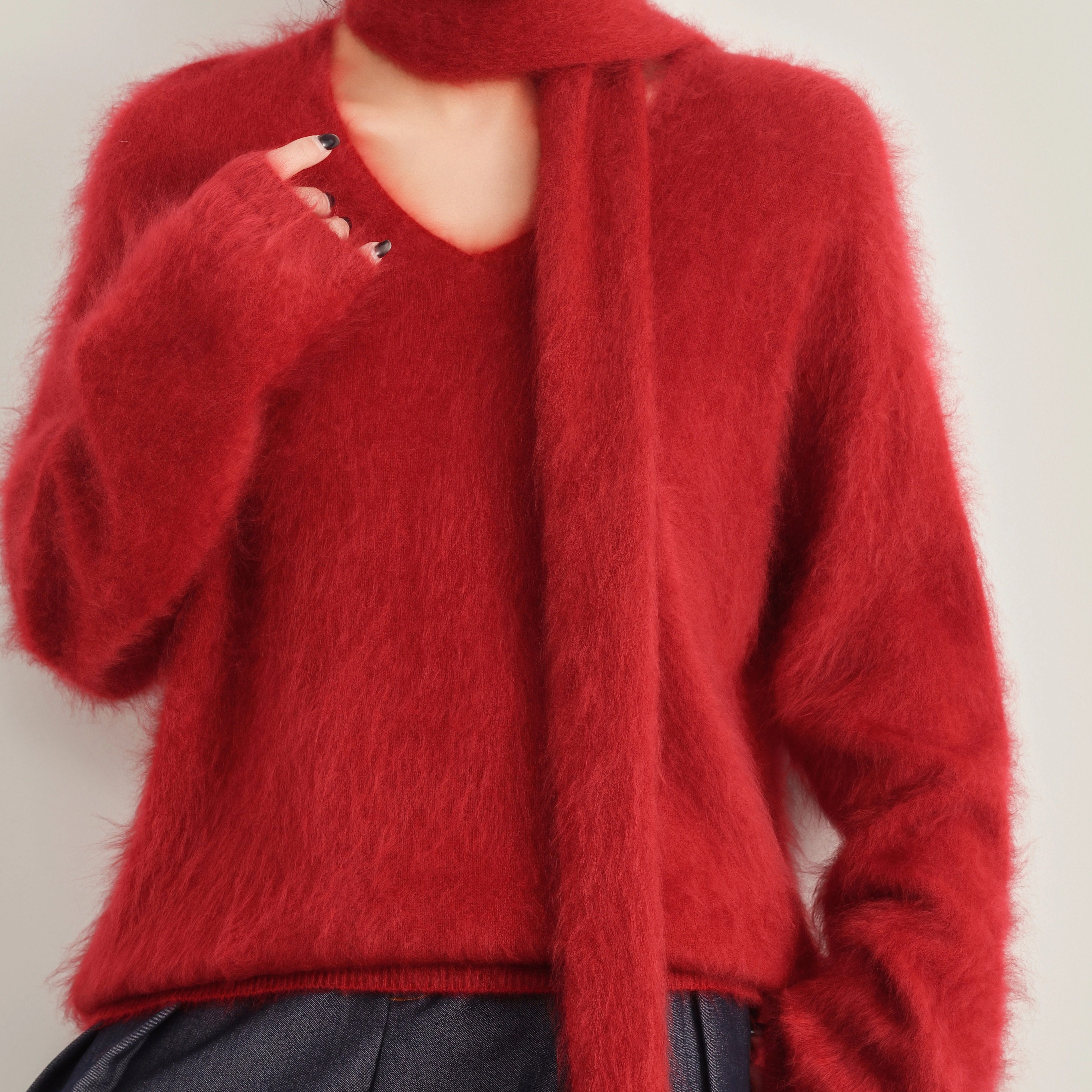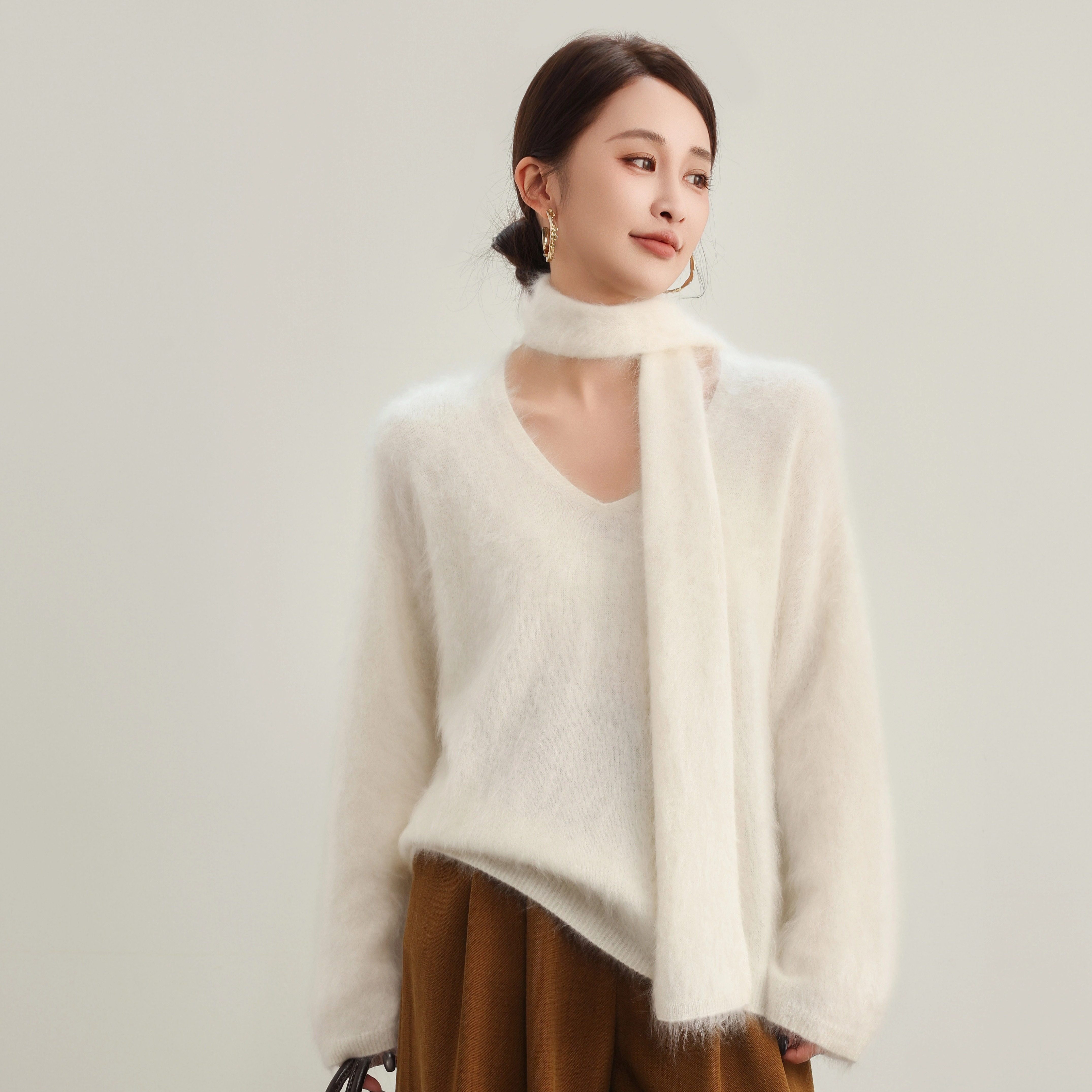 📚 V领加围巾100%山羊绒拉绒时尚洋气V领套头百搭显瘦羊绒12-Z2521