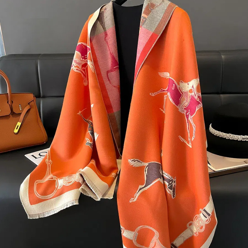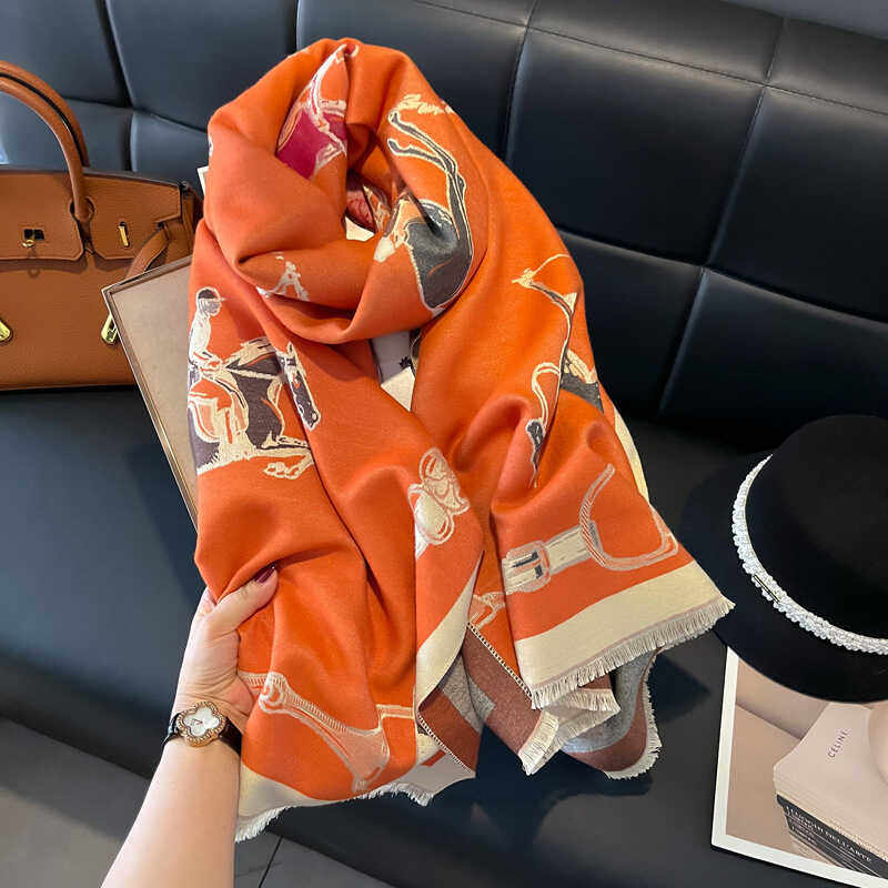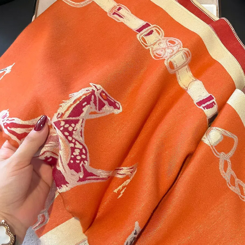 📚 法国CINSKINS春光明媚~骑士战马羊绒围巾女秋冬季长款双面披肩