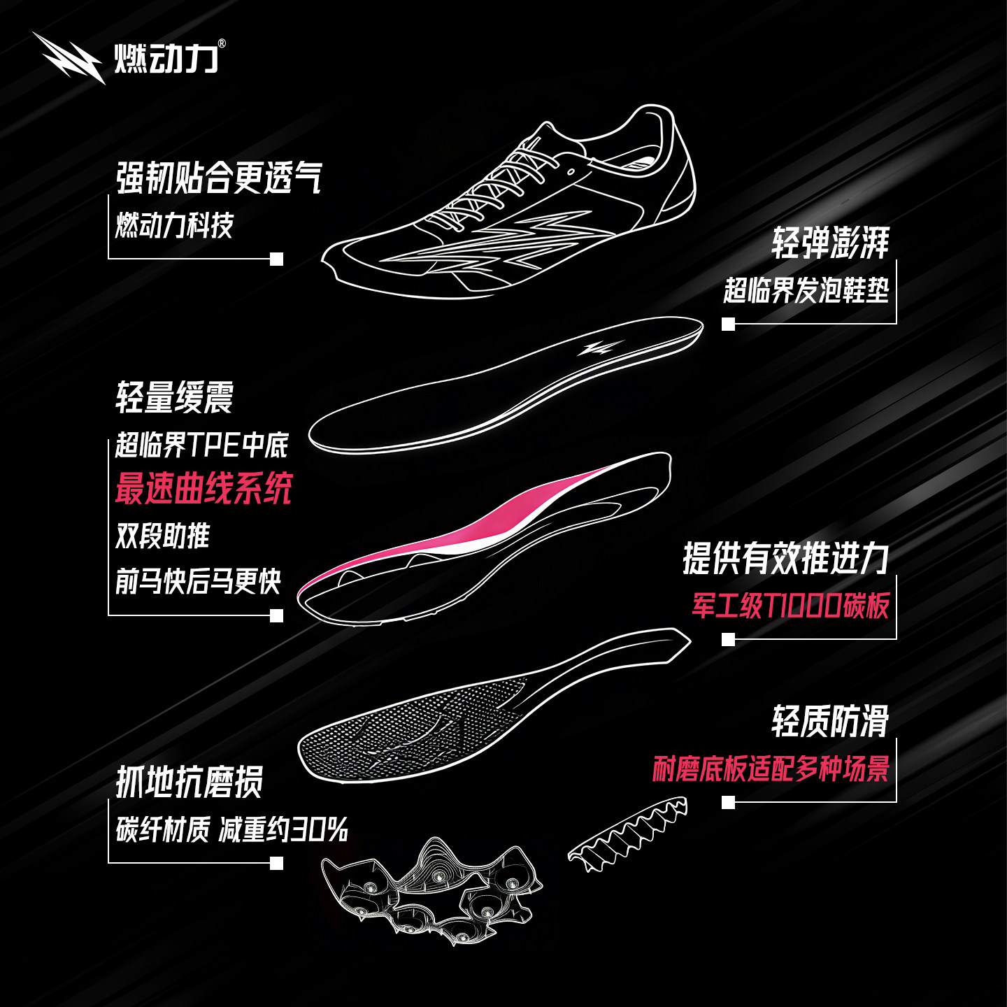 📚 燃动力闪电GT轻量钉鞋田径中短跑鞋全掌碳板学生体考体测专业钉鞋