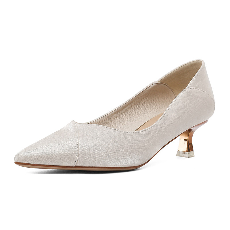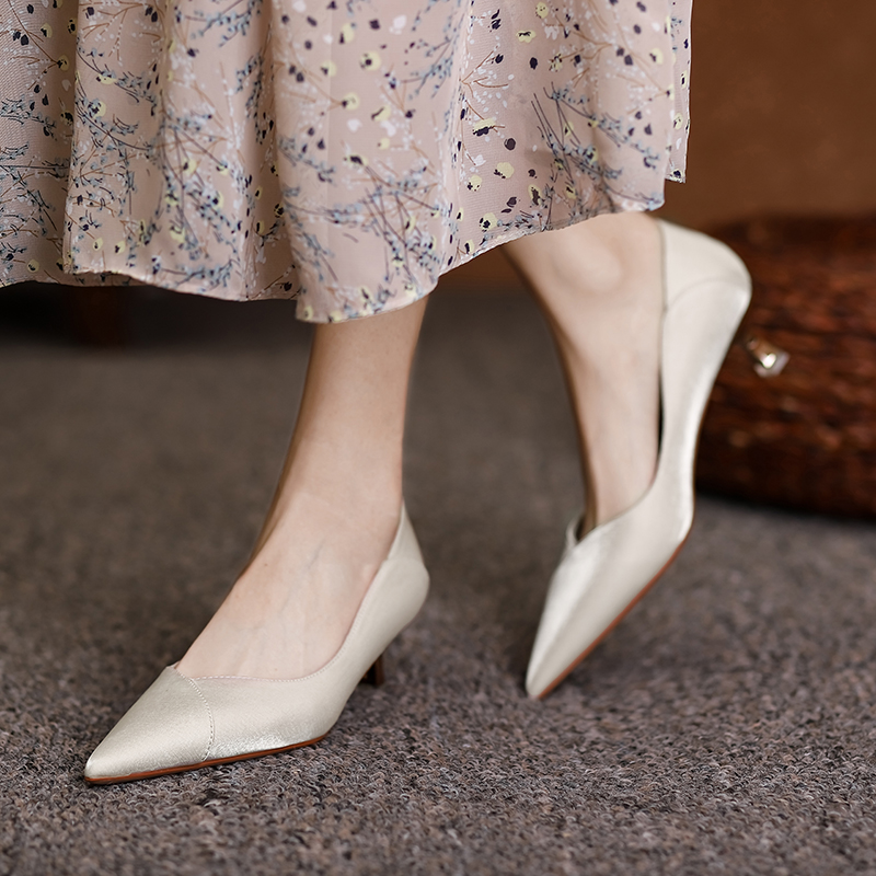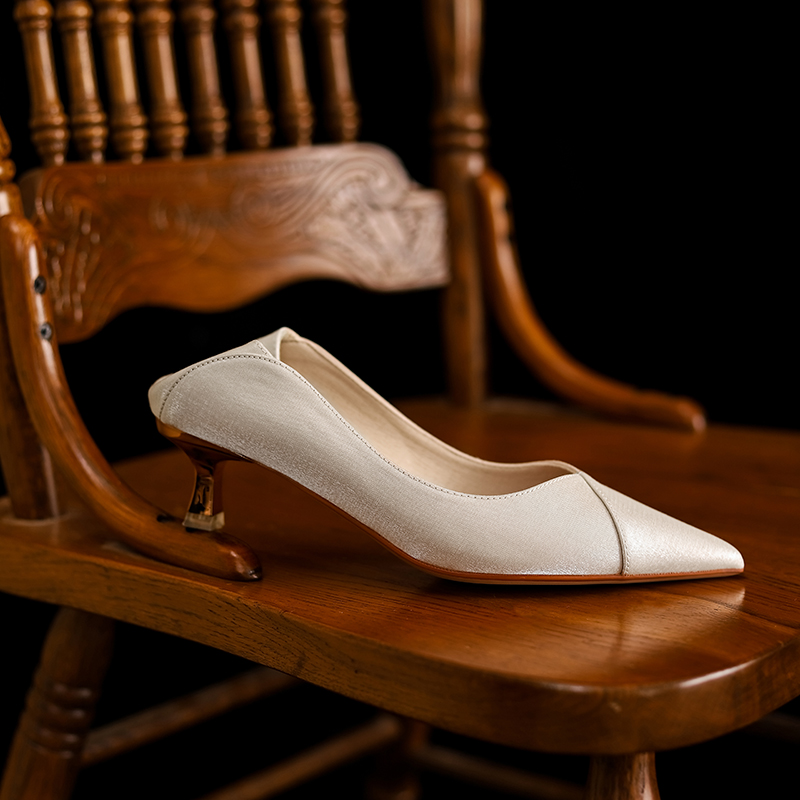 📚 绸缎面质感高跟鞋女细跟婚鞋日常可穿单鞋小矮跟猫跟尖头伴娘鞋