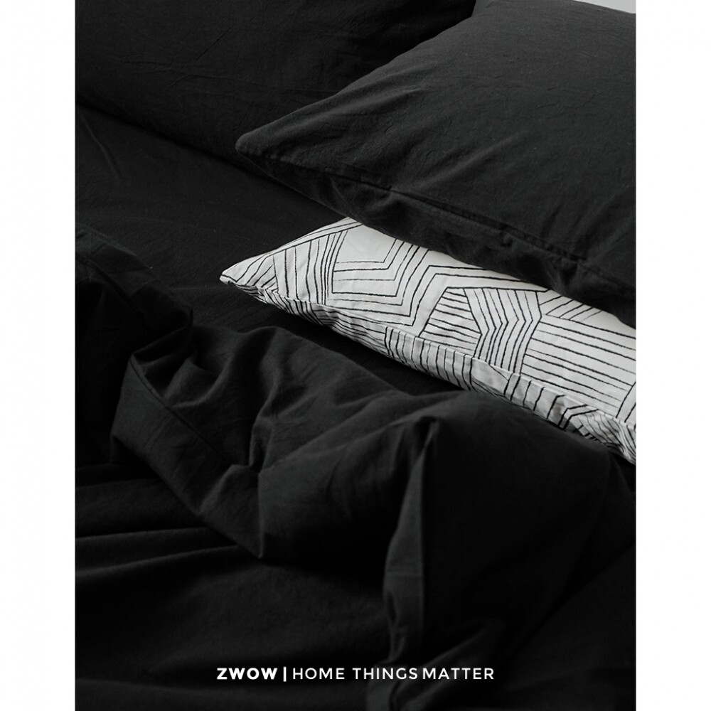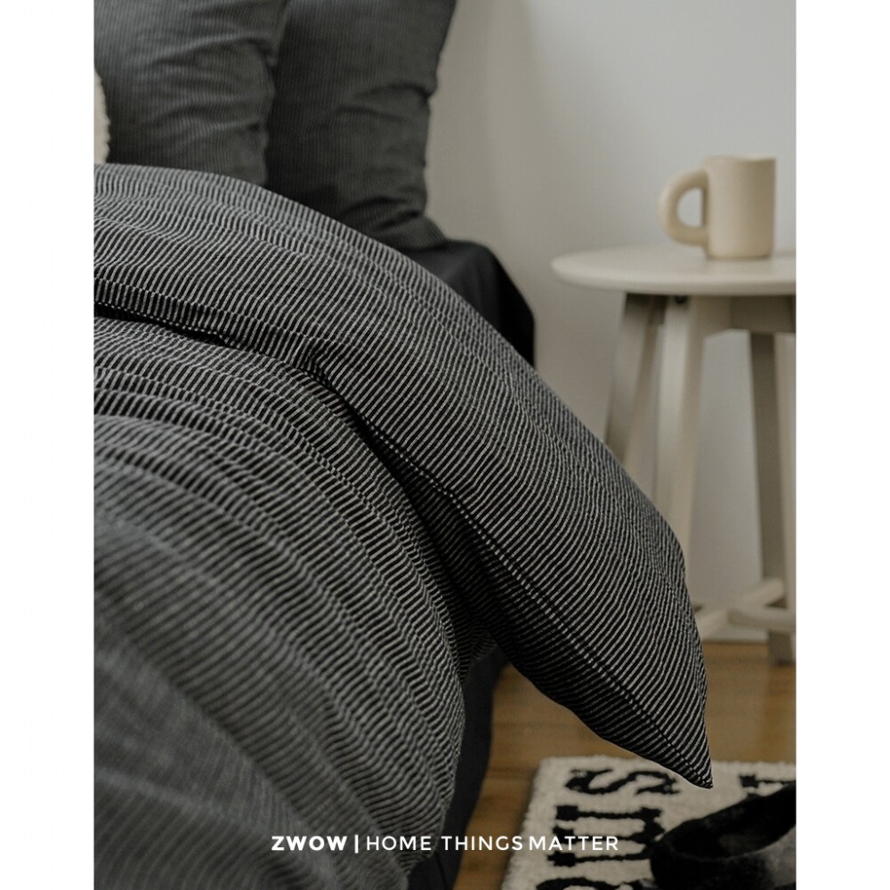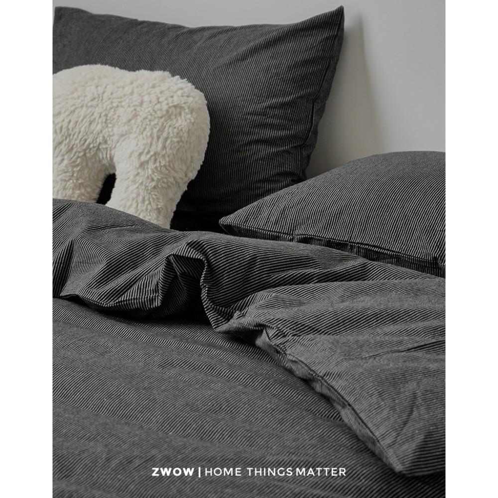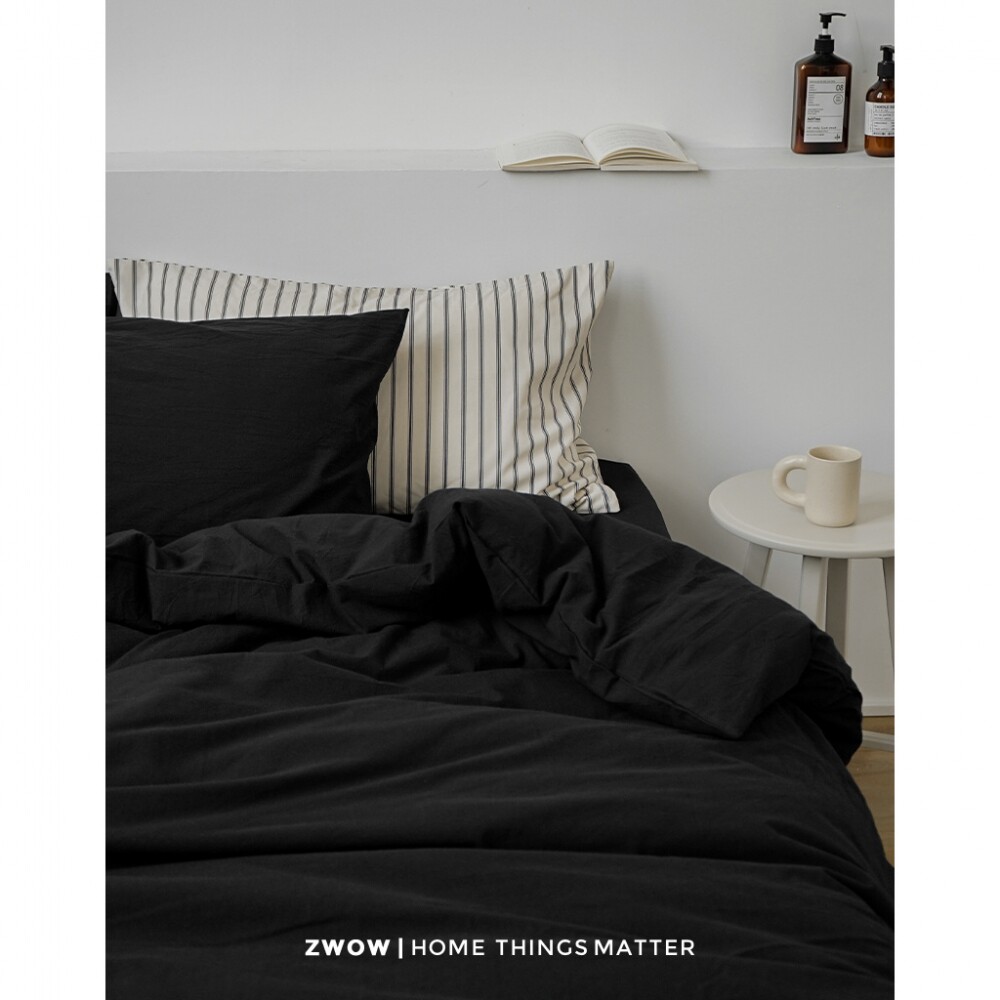 📚 造卧zwow四季款极简禁欲系侘寂风纯全棉黑色条纹男女生床上四件套
