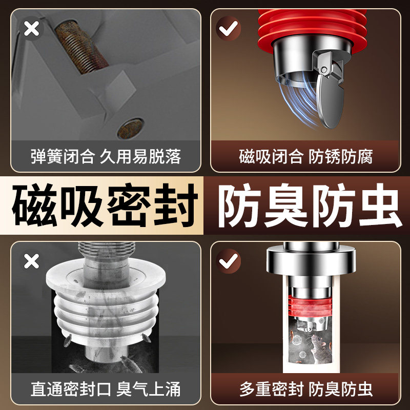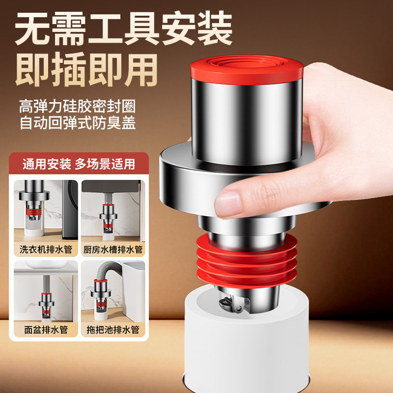 📚 不锈钢下水管防返臭神器洗手池厨房洗菜盆止逆阀排水管道密封塞子
